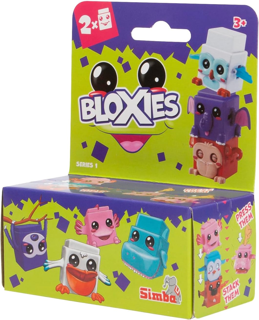 Bloxies – Animal-themed stackable building blocks from Simba Toys! Designed for kids aged 3 and above, these cute and colourful building blocks are guaranteed to keep your little one entertained: The cube-shaped animals can be stacked in a tower and come with 3 moving body parts: for example, when you press the button on top, the owl rolls its eyes, spreads its wings and shakes its tail feathers, while the crocodile opens its jaws and shakes its arms and tail. What’s more, when the animals are stacked in a tower, they all move at once! From well-known animals such as a mole and hippo to mysterious creatures such as an axolotl or sloth: The Bloxies range includes 18 stackable animal figures in 6 different colours, each of which features an intricately detailed design with moving body parts. And for avid collectors, there are also 3 special animals with a transparent, glittery gold design! Each figure is shipped in blind-box packaging, so you won’t know what’s inside until you open the box! Two Bloxies supplied in each box. Styles may vary.