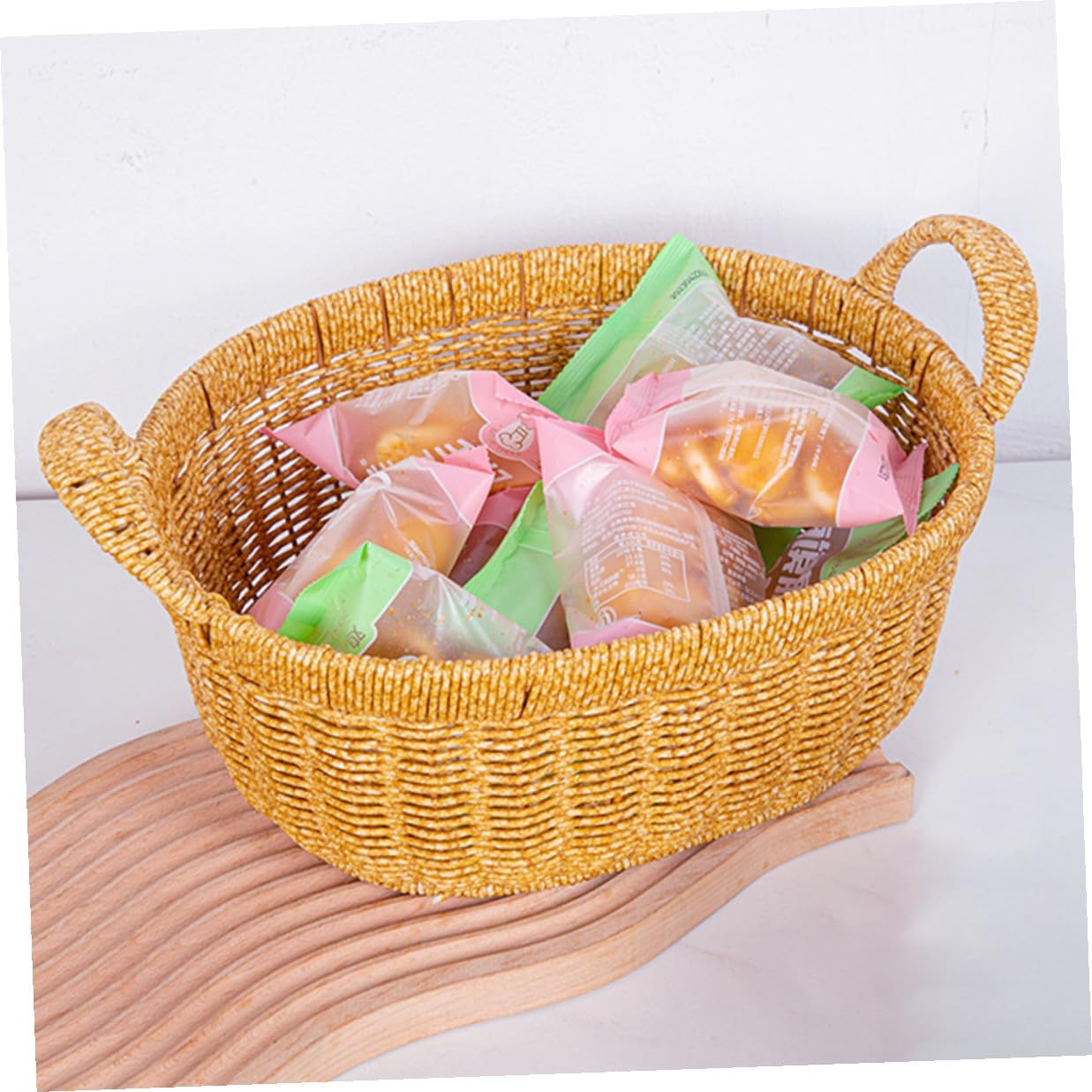 Package Include 1 x basket Features -Color:Khaki -Size:35.00X30.00X18.00cm/13.76X11.79X7.07in -Product Info:Fruit plate bread basket -Material:PP - The weaving basket can be very suitable for picnic, home storage tray, home decoration imitation rattan basket. - The excellent workmanship of our product will bring you a satisfying using experience and bring you happier mood imitation rattan woven bread baskets. - Can be placed in your living room, dinning room, kitchen, and other area as an ornament for your home imitation rattan storage basket. - Multi-purpose, not only suitable for home life but also for outdoor picnics and baskets for serving. - Easily match your interior decor and bring some retro and rustic beauty to any interior space display basket.Goods Informationimitation rattan woven baskets Easy to install and use, it can be easily applied to your home, a very practical accessory that will meet your needs well.woven basket This product is a woven basket, which is made of PP material, with good texture, safe and practical