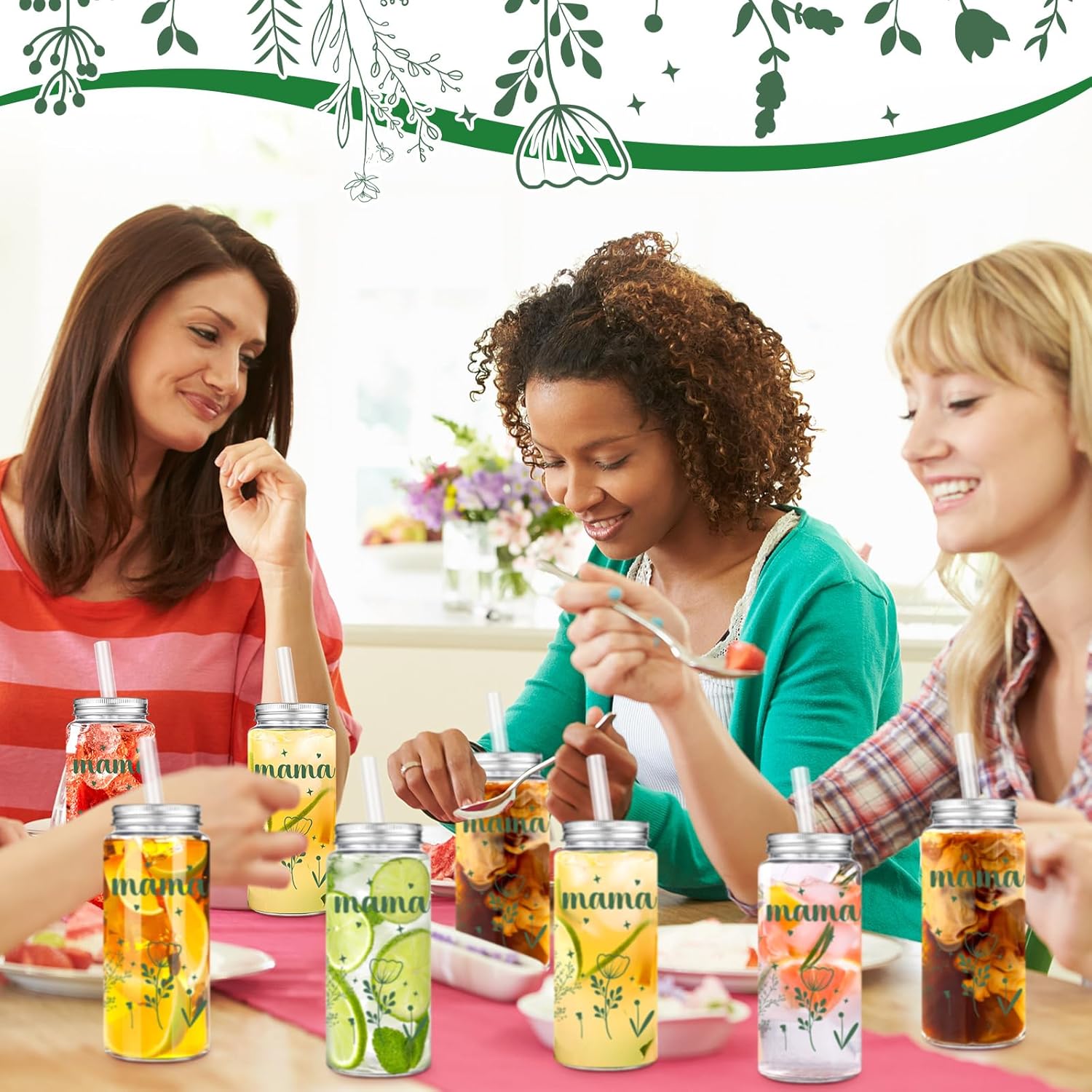 Features: Easy to Clean Feature: This mom drinking cup is designed for easy cleaning. Skip the hassle of scrubbing and spend more quality time with your beloved mom Token of Love: Celebrate the most treasured woman in your life with our Mother's Day tumbler with straw. This comes adorably printed with [ Mom ], making it a substantial and meaningful gift for your mother Color: Transparent cup, green pattern Size: The mom appreciation cup comes in a generous size of 14.2 oz. Package includes: Every order of the mom appreciation cup comes in a pack of 24 pieces. Notes: Manual measurement, please allow slight errors on size. The color may exist a slight difference due to different screen displays