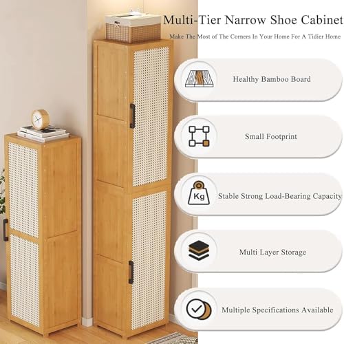 Are you overwhelmed by a cluttered entryway filled with shoes? Our Tall Shoe Cabinet offers an elegant solution to organize your footwear while enhancing your home’s decor. With its sleek design, this cabinet effortlessly complements any style, making your space look cleaner and more inviting. This multifunctional shoe rack provides ample storage for various types of footwear, including high heels, sneakers, and sandals. Beyond storage, it serves as a stylish display for books, collectibles, and photos, helping you transform your living areas into serene environments. Decluttering has never been easier! Designed to maximize space, our shoe cabinet is perfect for narrow hallways or corners, allowing you to utilize every inch of your home efficiently. Crafted from sturdy bamboo and engineered wood, it ensures durability and reliability for years to come. Product Specifications: - Name: Tall Shoe Cabinet - Material: Bamboo and engineered wood - Suitable for: Entryways, Living Rooms, Hotels, Hallways - Assembly required: Yes - Size options: - 30×33×98cm / 11.8×12.9×38.6in - 30×33×129cm / 11.8×12.9×50.7in - 30×33×160cm / 11.8×12.9×62.9in - 30×33×188cm / 11.8×12.9×74in Safety Tips: - Follow the assembly instructions carefully. - Ensure the cabinet is stable and balanced before use. - Keep the area around the cabinet clear to prevent tripping hazards. - Avoid overloading the cabinet to maintain safety. - Supervise children near the cabinet. Notes: 1. A slight odor may develop after prolonged use; it is advisable to air it out in a ventilated space. 2. Actual product color may vary slightly due to different display settings. 3. Manual measurements may have a deviation of 1-3 cm. Elevate your home organization with our Tall Shoe Cabinet and enjoy a tidier, more stylish living space.