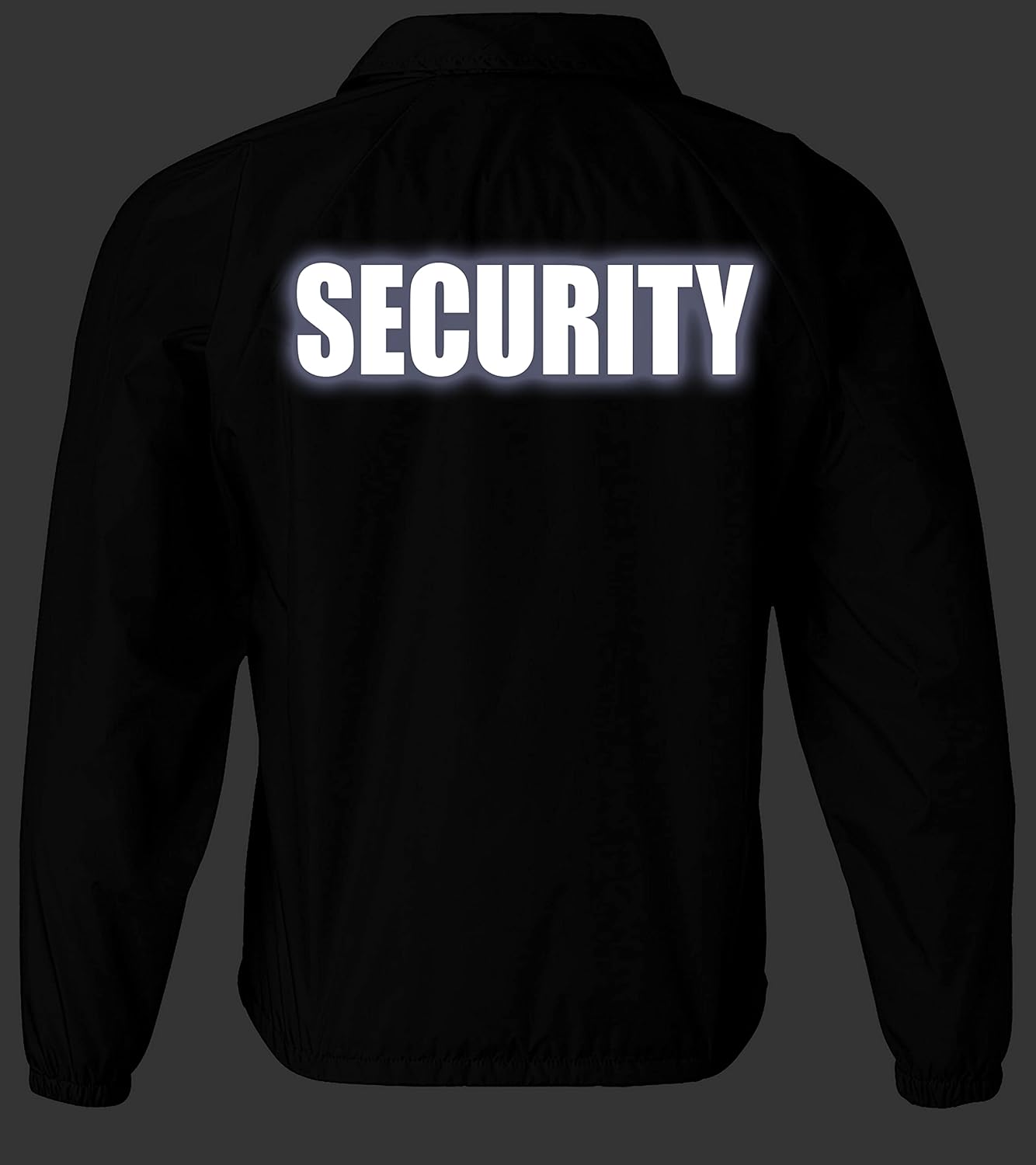 Security nylon jacket in with Reflective logos, front and back.