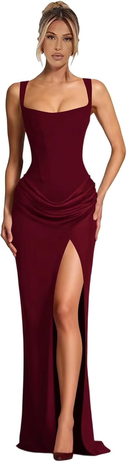We are committed to creating pretty and fitting dresses for every customer.This satin dress with exquisite workmanship that is very suitable for women to attend various events. Details Fabric : High quality Satin dress.100% Handmade Neckline: Square Neck Back Details : Lace up If you are not sure of the size, We can recommend sizes for you or customize them for free.Please send me your measurements below: Bust _____ in Waist _____in Hips _____in Hollow to Floor ____ in