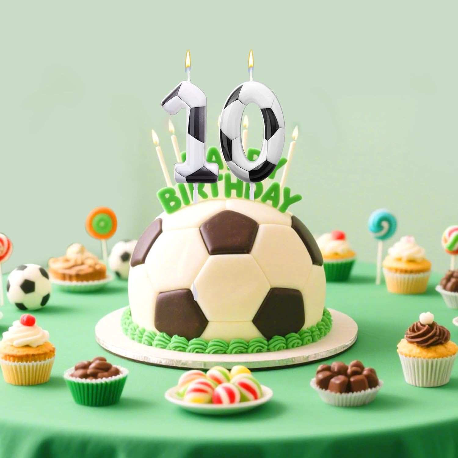 Specification: Color: white, black Material: paraffin wax Product Size: Candle: 6x4cm/2.36x1.57in; Support stick: 7cm/2.76in Package details: 1 x soccer number candle Note: Due to manual measurement, the size and weight may have a certain error. Due to the difference between different monitors, there may be a slight color difference existed.