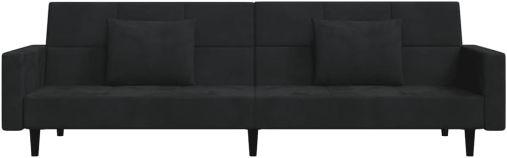 This posh black velvet sofa bed really nails comfort and style in your place. Made with versatility and a modern vibe in mind, this 2-seater's spot on for hosting overnight guests while adding a sophisticated touch to your setup. With its sharp rectangular shape and plush velvet feel, it slots right into any room, making it perfect for your living room or bedroom. Change up your space easily, mixing practicality with a striking look that enhances your home's atmosphere.Convertible Functionality: Easily switch from sofa to bed for unexpected guests and create a cozy sleeping area without sacrificing style.Luxurious Velvet Fabric: The soft velvet fabric boosts comfort while looking fabulous in modern interiors.Smart Space Solution: This sofa bed works great in small spaces, making it a top choice for apartments or multifunctional rooms.Included Cushions: Comes with two matching pillows for added comfort and support, fitting perfectly into the design.Sturdy Build: Made from quality materials, this sofa can support up to 241 lbs comfortably, ensuring it lasts well for everyday use.Colour: Black Shape: RectangularMaterial: Farbic VelvetFinish: Matte Indoor/Outdoor: Indoor OnlyCover Included: NoRoom: Living RoomCapacity: 2-seaterMaximum Number of People: 2Maximum Weight: 110 kgDimensions: 84.5 x 220 x 69 cm (W x L x H)Min-Max Dimensions: 20.5Leg Height: 15 cmWeight: 2615 kgSeat Depth: 50 cmSeating Capacity: 2Swings: NoDelivery Contains: 1 x Sofa bed, 2 x PillowAssembly Required: YesRecommended Number of People for Assembly: 2SKU: 375821