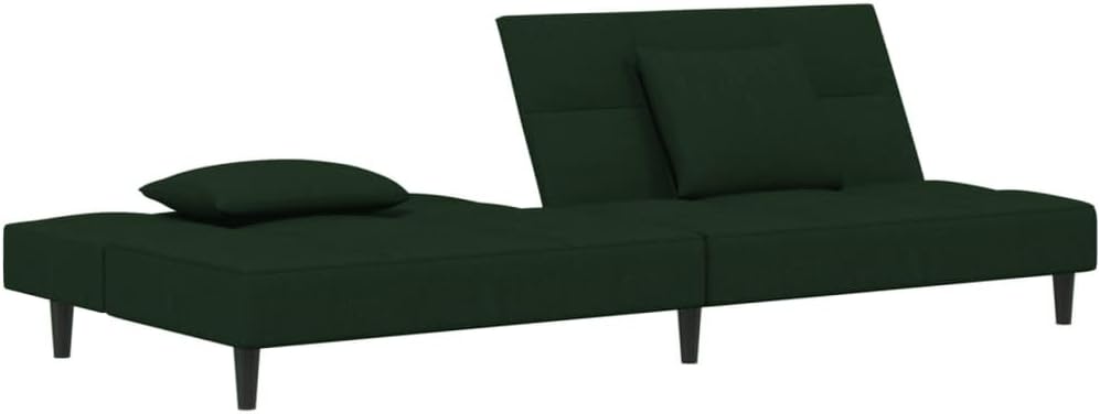 This 2-seater sofa bed mixes modern style with practicality, making it a great fit for any contemporary setup. Its striking dark green velvet invites you to settle in, ensuring guests feel right at home with this flexible furniture piece.Convertible Feature: Switch easily from sofa to a comfy bed in no time, making it a handy option for tight spaces or surprise guests. This means you're always ready for overnight visits without losing style.Plush Velvet Material: Made with top-notch velvet fabric, this sofa bed feels super soft and adds a touch of luxury to your decor. It’s not just comfy; the texture is inviting and looks great.Adjustable Armrests: With two height options, the armrests adjust to match your comfort needs, making sure everyone can sit comfortably.Space-Saving Design: Perfectly sized for apartments or snug living areas, this compact sofa bed fits nicely into any room without feeling cramped. It’s both functional and stylish, keeping a good flow and maximizing your space.Accompanied by Pillows: This sofa bed comes with two matching velvet pillows that add extra style and comfort, giving you a complete seating setup. The pillows boost the overall look while providing extra support when lounging.Colour: Green Shape: RectangularMaterial: Farbic VelvetFinish: Matte Indoor/Outdoor: Indoor OnlyCover Included: NoRoom: Living RoomCapacity: 2-seaterMaximum Number of People: 2Maximum Weight: 242.5 kgDimensions: 33.3 x 78.7 x 27.2 cm (W x L x H)Min-Max Dimensions: 22Leg Height: 15 cmWeight: 2165 kgSeat Depth: 50 cmSeating Capacity: 2Swings: NoDelivery Contains: 1 x Sofa bedAssembly Required: YesRecommended Number of People for Assembly: 1SKU: 375809