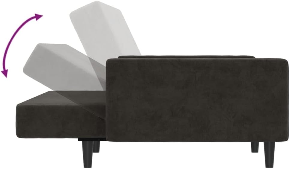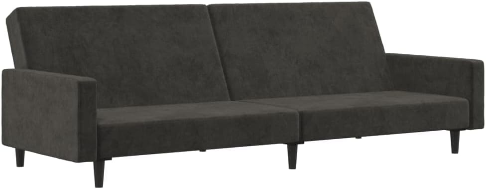 This modern 2-seater sofa bed combines style and practicality, making it perfect for any living space or spare room. Its chic dark grey velvet fabric enhances the overall elegance, creating a cozy vibe wherever you put it, whether for lounging or entertaining.Convertible Functionality: The sofa bed flips into a cozy bed, perfect for overnight guests. Just unfold the seating area to create a comfy spot for sleep without sacrificing style.Soft Velvet Finish: Made from plush velvet, the surface feels luxurious and looks stunning, naturally enhancing your decor.Adjustable Armrests: The armrests offer tailored comfort, letting users adjust their positions for the best support while lounging or reading.Sturdy Frame: Built from sturdy natural wood and synthetic materials, this sofa bed can hold up to 242.5 lbs easily, providing reliable use while keeping things safe.Compact Size: With dimensions of 86.6 in long and 20.5 in tall, this sofa bed fits nicely in smaller spaces without losing functionality, making it ideal for city living.Colour: Grey Shape: RectangularMaterial: Farbic VelvetFinish: Soft velvet finishIndoor/Outdoor: Indoor OnlyCover Included: NoRoom: Living RoomMaximum Number of People: 2Maximum Weight: 110 kgDimensions: 84.5 x 220 x 69 cm (W x L x H)Surface Height: 52 cmLeg Height: 15 cmWeight: 265 kgSeat Depth: 50 cmSeating Capacity: 2Swings: NoDelivery Contains: 1 sofa bedAssembly Required: YesRecommended Number of People for Assembly: 2SKU: 375738