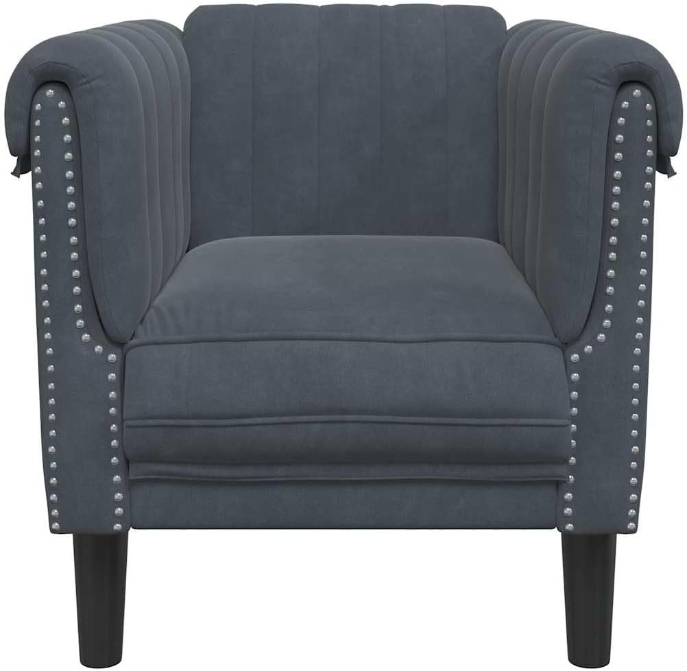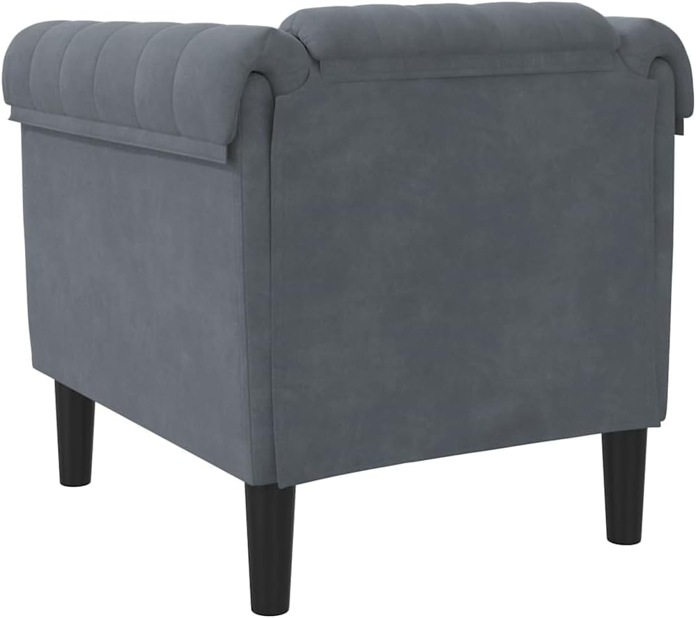 This Sofa Chair in dark grey velvet is a fabulous mix of style and comfort. Its modern look and soft upholstery create a welcoming spot, perfect for curling up with a book or chatting with friends in your living room or bedroom.The modern design features sleek lines and a minimalist feel, making it a great addition to any contemporary space.Soft-touch velvet upholstery not only looks plush but also offers a comfy seating experience for long stretches.The boxed cushion design ensures the seat keeps its shape while giving you plenty of support and comfort.Each armrest is cleverly designed with a rolled style, providing both support and flair, boosting the chair's overall vibe.This chair is adaptable, great for everything from reading corners to socializing in living rooms or bedrooms.Colour: Grey Shape: RectangularMaterial: Farbic VelvetFinish: Matte Indoor/Outdoor: Indoor OnlyCover Included: NoRoom: Living RoomMaximum Number of People: 1Maximum Weight: 110 kgDimensions: 77 x 80 x 74 cm (W x L x H)Leg Height: 15 cmWeight: 15 kgSeat Depth: 58 cmSeating Capacity: 1Swings: NoDelivery Contains: Sofa ChairAssembly Required: YesRecommended Number of People for Assembly: 2