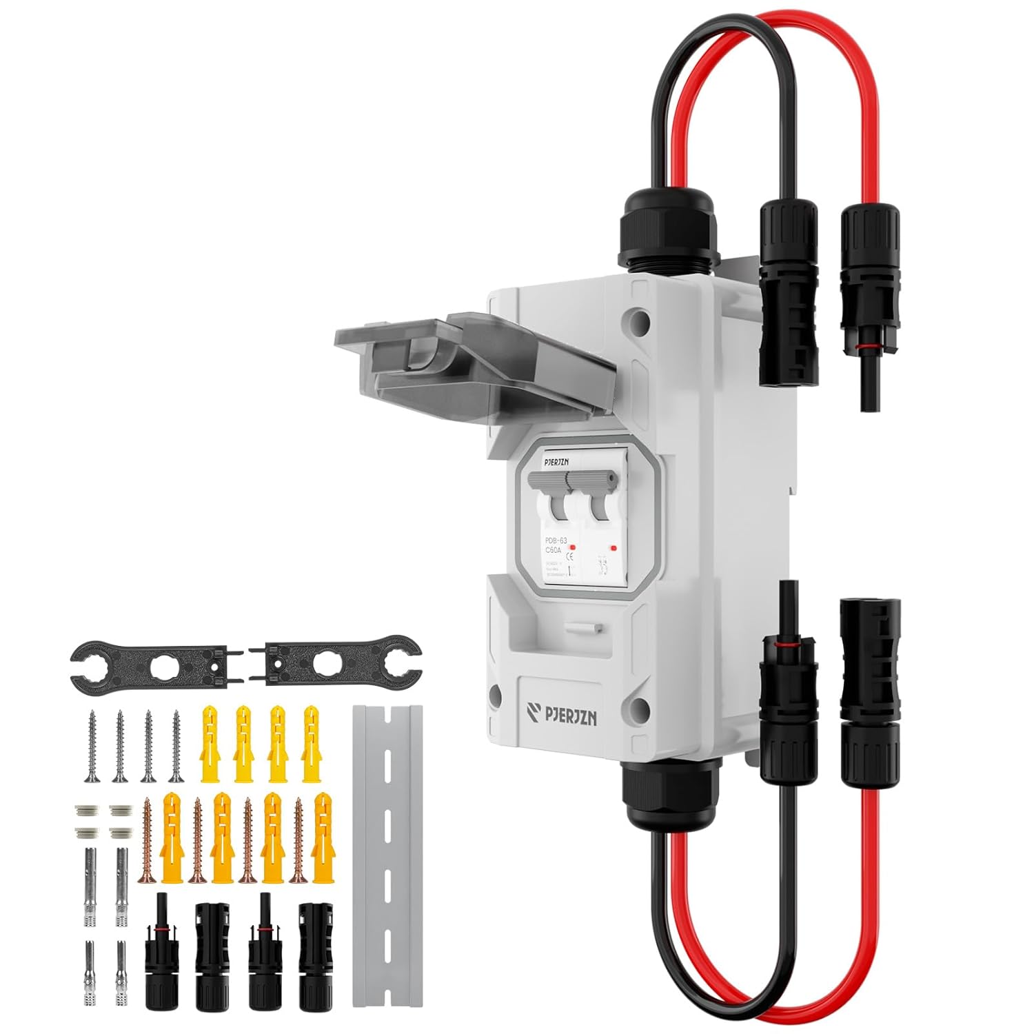 | Included Components | solar disconnect switch, 2 wrenches, 2 connectors, 8 screws, 35mm DIN rail |