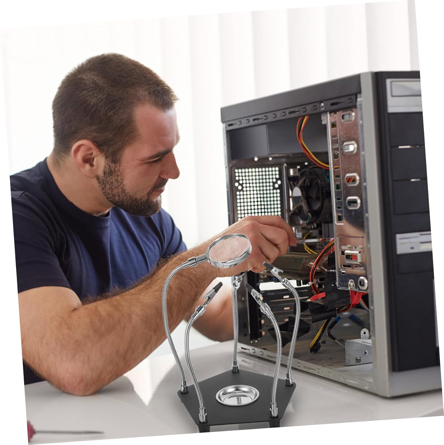Package List 1 x Welding station Features -Size:26.00X18.30X18.00cm/10.22X7.19X7.07in welding table clamps -Color:Black soldering station -Material:Iron welding accessories and tools -By significantly reducing the time and effort for soldering, this tool enhances soldering process, making work soldering stations. -The secure clamping of this tool offers stability, ensuring soldering work helping hands tool. -Versatile and adaptable, this is suitable for a wide range of repair and soldering tasks soldering kit projects. -Equipped with high-definition, this tool provides view, ensuring that soldering task is with meticulous attention to detail helping hands. -This innovative tool, allowing users to position with precision, making it for soldering pcb boards with accuracy third hand soldering tool.Goods Descriptionsoldering tools The multi-functional design of our helping hands soldering station allows for precise adjustments, making it suitable for a wide range of applications.soldering station kit Maximize your efficiency with our soldering tool.soldering iron station The high-definition feature, ensuring results