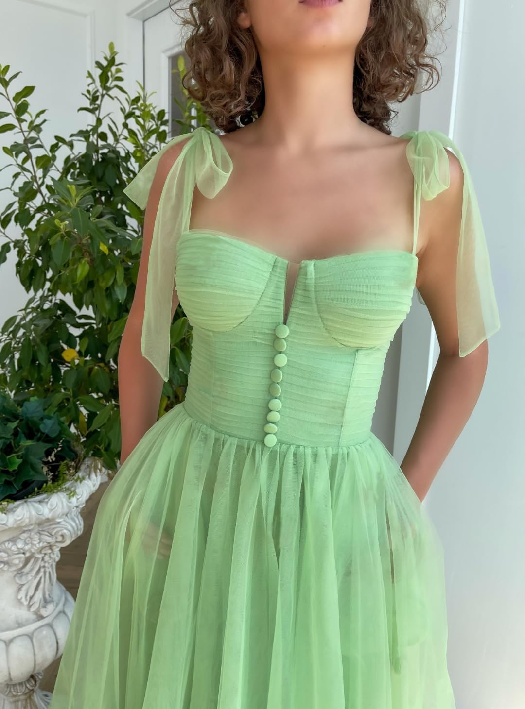 | Fabric Type | Tulle Spaghetti Straps Prom Dress |
