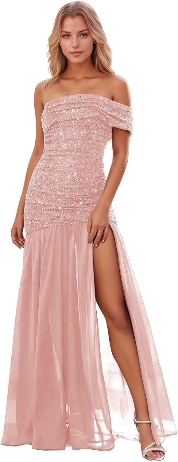 Sparkly sequin prom dresses for women 2026,off shoulder ball gowns long plus size,corset gala dress,tiered formal evening party gowns with slit,wedding guest dress,maxi dress.Features for prom dressSparkly Sequin CorsetOff Shoulderwith Slitwith ScarfLongWash instruction●Hand wash●Do not machine wash and do not bleachThis sparkly sequin prom dress is perfect for ball gown,prom gown,evening gown,holidays,formal evening party gowns,wedding guest dress,carnivals,formal gown,pageant,graduation,ceremony,anniversary,birthday party,garden weddings,special occasion and other formal and semi-formal occasions.Don't find suitable standard size and colour? Don't worry, because we can custom size free for you. Please provide us below measurements to help us make the dress fit you better.please complete following details:1. Bust:____ inch or ___ cm.2. Waist:____ inch or ___ cm.3. Hips:____ inch or ___ cm.4. Hollow to floor(with shoes):____ inch or ___ cm.5. Heel Height:____ inches or ____ cm.6. Event date:____ .