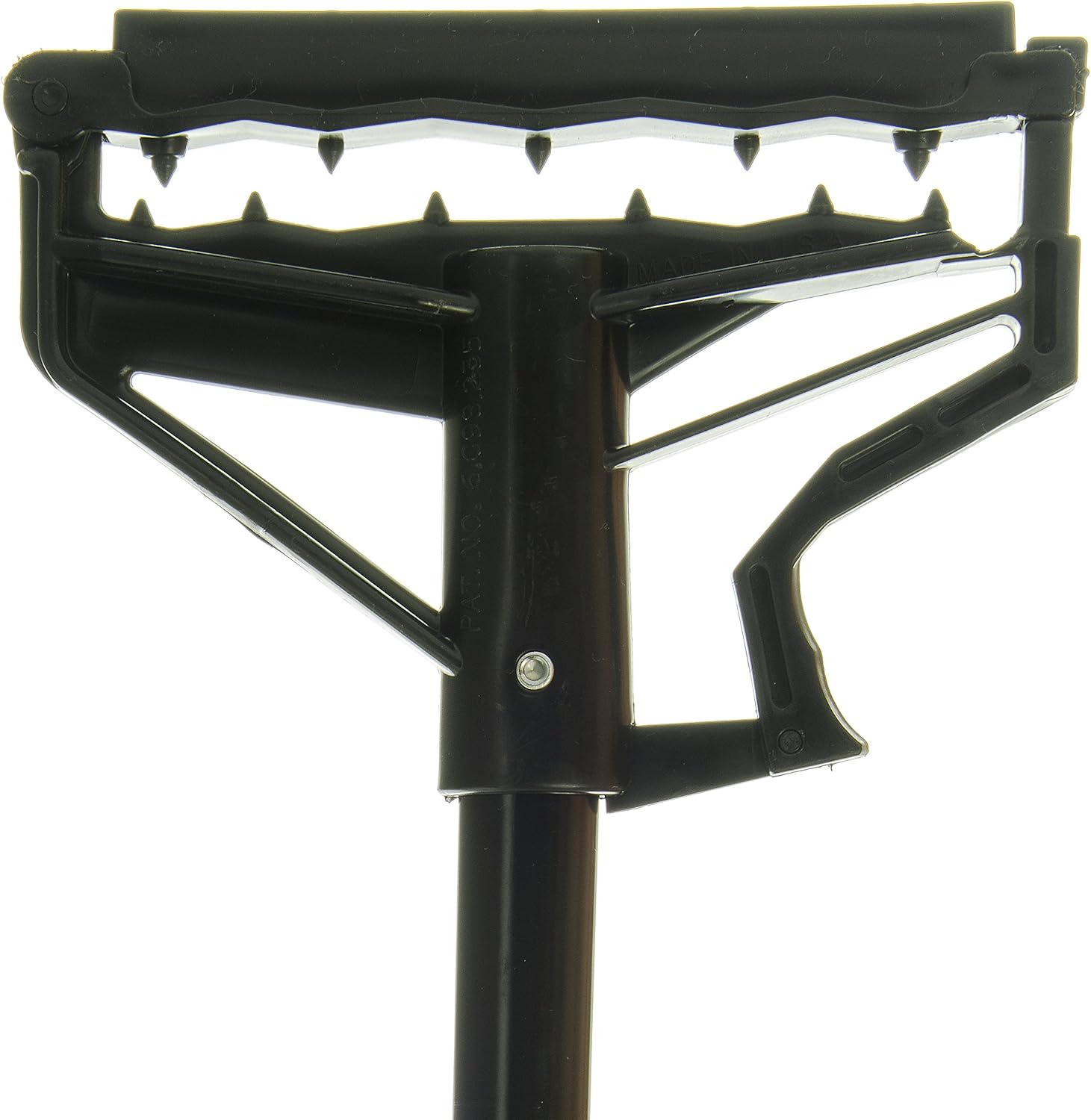 Flo-Pac Spectrum Quik-Release Mop Handle, 60" long, 1" dia., swivel hanging cap, hinged gripper bites, flexible plastic head, vinyl coated metal handle, standard color Model number: 36959500.