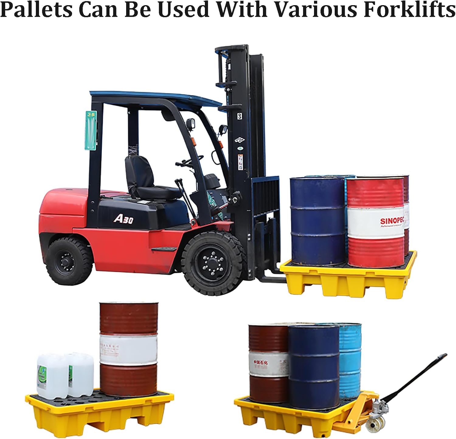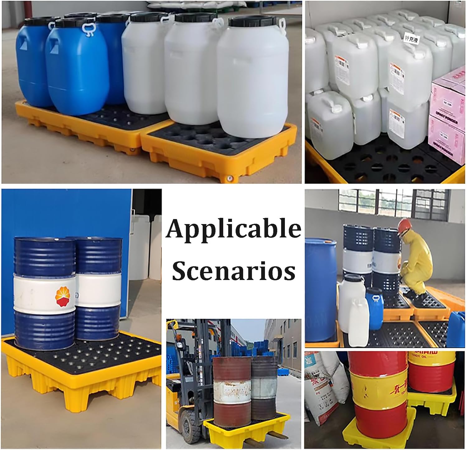 • Polyethylene Spill Platform: Yellow and black Spill Pallet are both made of HDPE, non-hygroscopic, waterproof, effectively prevent leakage, light weight, high load bearing, good cold and heat resistance, can be used repeatedly.