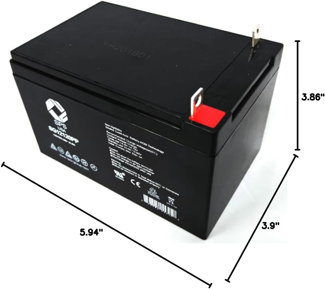 Shipment contains ONE of SPS Brand 12V 12Ah Rechargeable SLA Replacement Batteries with PP type Terminals for Schumacher DSR DA12V12-MM Power-Up Auto (Pack 1). Please reuse your cables and connectors - We ship only Batteries. Replacement Batteries supplied by Right Price Batteries for Schumacher DSR DA12V12-MM Power-Up Auto are of high quality, designed to meet or exceed original OEM specifications. They were manufactured by ISO certified companies. Spec: 12V 12Ah, LxWxH = 5.94 X 3.9 X 3.86 inch, Weight = 8LBS/unit.