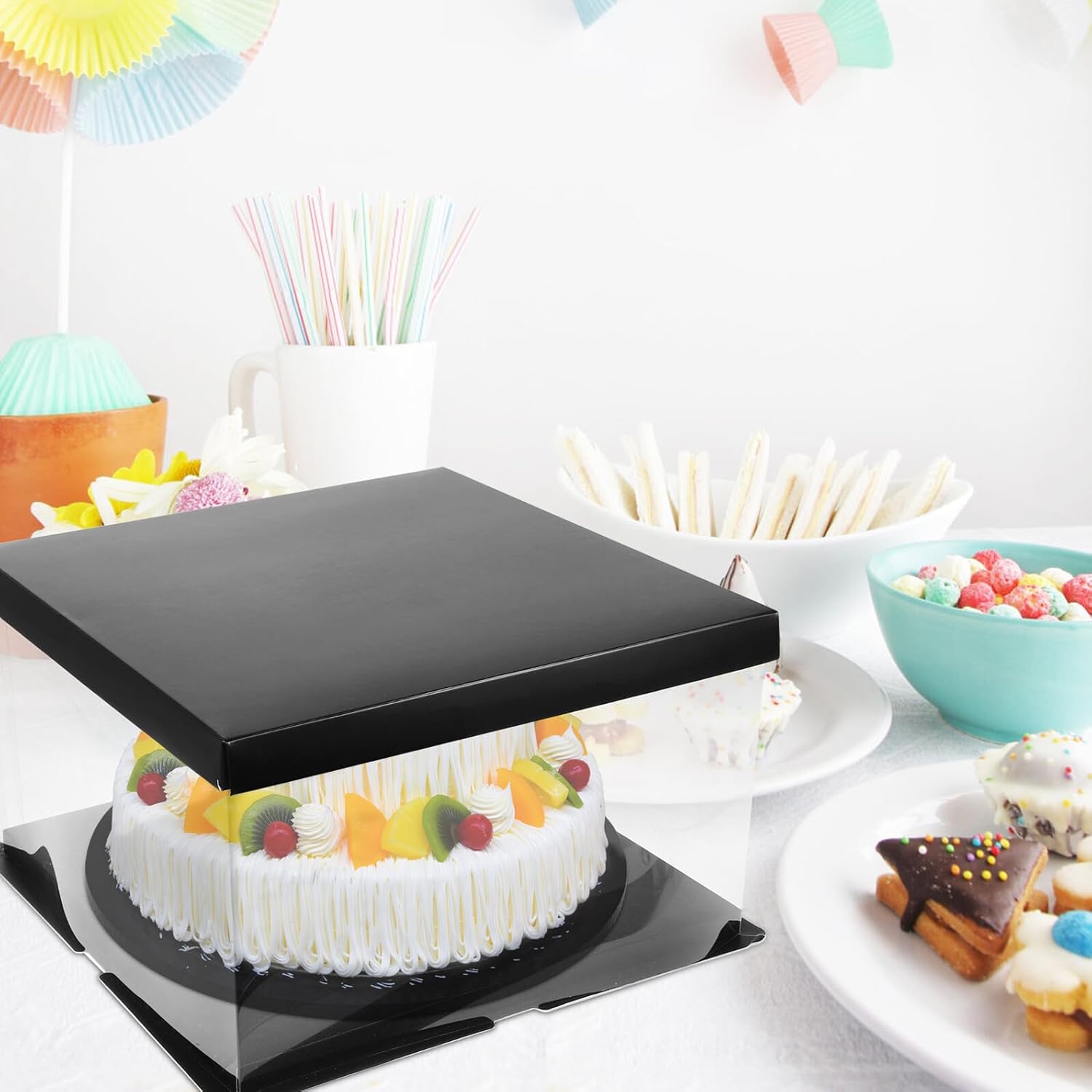 Package Include 4 x Cake Box Characteristics -Material:Paper,PVC -Size:30.00X30.00X18.00cm/11.79X11.79X7.07in -Note: Not included ribbon cake boxes clear -Product Info:Cake packaging box -Color:Black -The transparent cake box is designed to highlight the delicacy of the food inside without much decoration transparent bakery boxes. -Wide application, the cake box is suitable for birthday, wedding, shower and other parties cake container. -Compact and light in weight design for easy to carry, sufficient quantity can meet your quantity demands cake boxes. -This cake box is perfect for carrying and storing cake, cupcake, dessert food, small cake, etc Cake Packing Holder. -With light weight, compact size, the cake box is easy to carry and store when not used.Goods Descriptioncake containers With a lid, this cake box is used for storing and protecting your products and items, especially cakes.transparent cake boxes The cake carrier is made of stable material, protecting your cakes from all sides.cake boxes Perfect for wrapping candies, sweets, cookies or any small you want to give