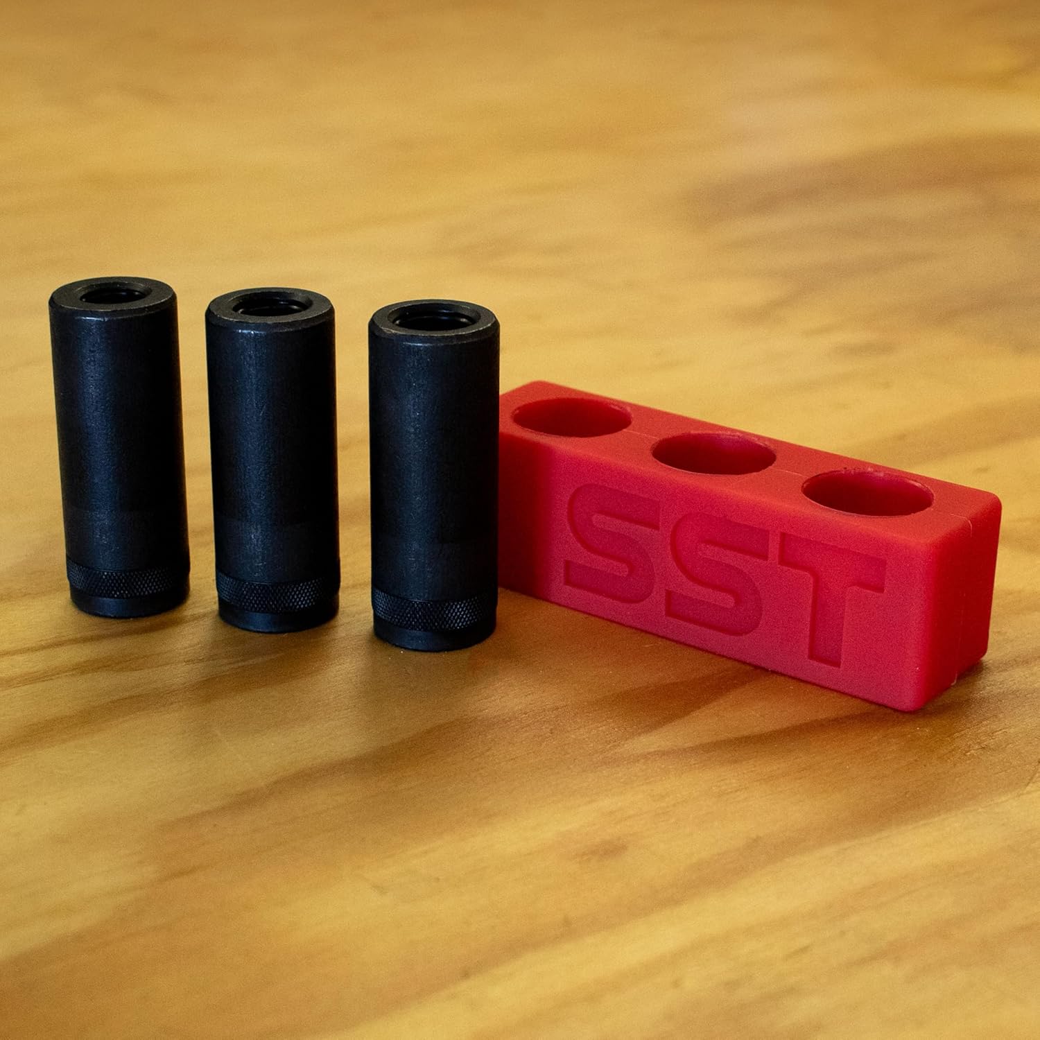 Attach Stupid Simple Tools’ Tap Socket Wrench adapter to your 1/2” square drive tool, pop in your thread tap, and let your ratchet wrench, electric screwdriver, or drill do the hard work. Thread holes in seconds without breaking a sweat. Compatible with all number and fractional M.C.T.I. taps up to 3/4". From delicate threads in plastic to hefty threads in steel, this tap socket set is ready for anything. A protective black oxide coating, knurled gripping surface, and internal O-ring combine to protect, grip, and secure your thread taps—even in tight spaces where T-handle tap wrenches can’t go. Made from high-strength CrV steel with precision machining, this set is designed to handle heavy use and demanding jobs without compromise. Backed by our 5-year SST warranty, this tap socket set is built to last. We stand by the quality of our tools, so you can focus on getting the job done.
