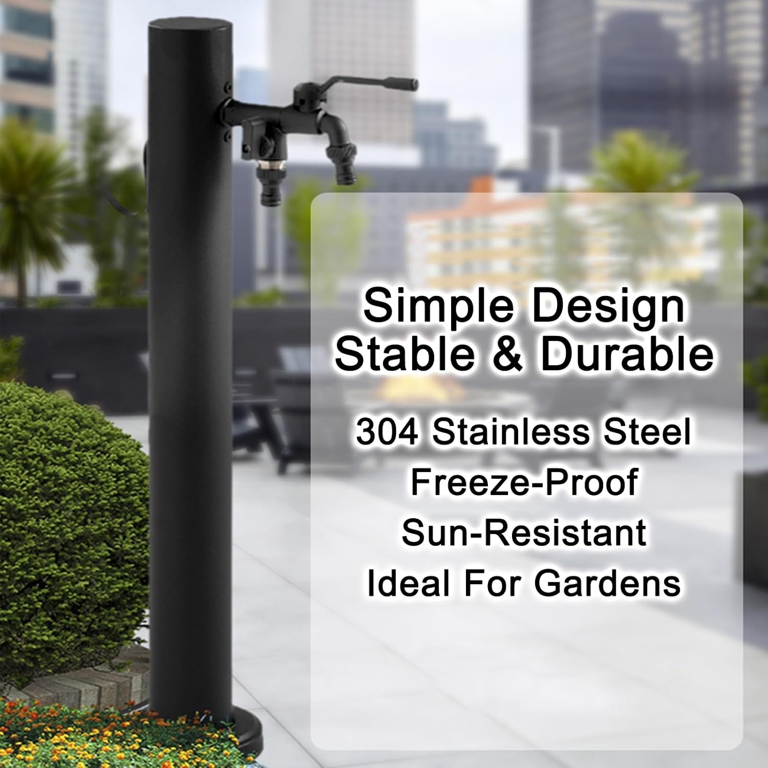 This versatile garden water column is designed to enhance your outdoor experience, making it an ideal solution for farms, schools, gardens, and workshops. With its built-in hose system, it provides convenient access to both drinking and tap water, ensuring you have the right water source for any task. The side-mounted hose rack neatly stores your hoses, preventing curling and tangling, which means less time spent on maintenance and more time enjoying your outdoor activities. Constructed from durable 304 stainless steel and finished with high-temperature paint, this water column is built to withstand the elements. Its antifreeze and rust-resistant properties ensure long-lasting performance, making it a reliable choice for any outdoor venue. Available in heights of 24 inches and 31 inches, with a column diameter of 2.4 inches, it fits seamlessly into your landscape. Installation is straightforward with options for side or floor entry, and a universal faucet makes it adaptable to your setup. Whether you’re watering plants, filling up containers, or providing water for livestock, this garden water column meets all your needs with efficiency and style. Packing includes everything you need to get started: one garden water column, a double faucet, a water pipe bracket, and a complete set of installation accessories. Elevate your outdoor space with this practical and stylish water solution that combines functionality with aesthetic appeal.