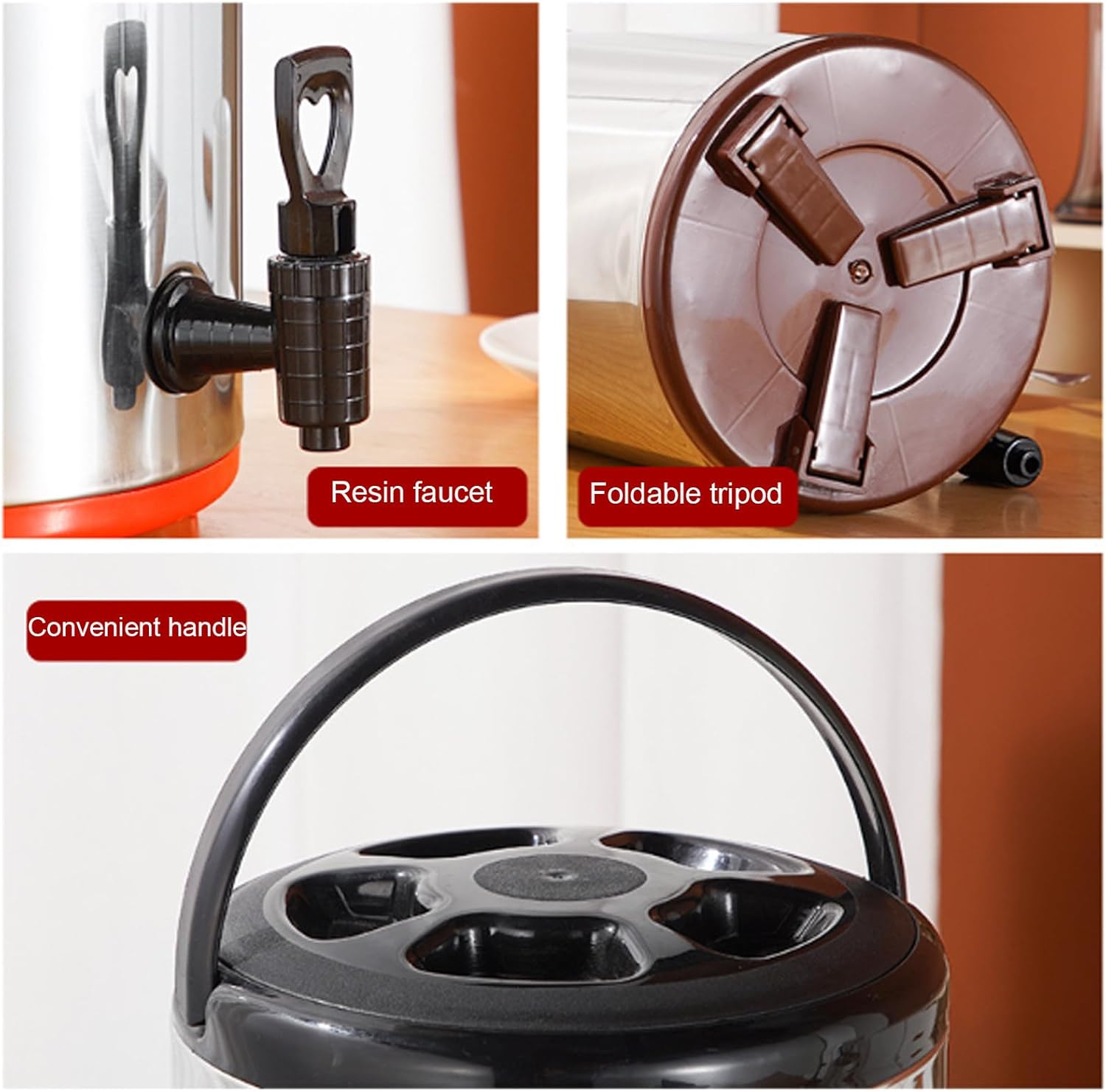 Introducing our versatile hot and cold water dispenser, an ideal solution for diverse environments such as coffee shops, offices, hotels, kindergartens, and outdoor gatherings. This multi-functional appliance combines the features of an insulation cup, insulation barrel, and milk tea barrel, crafted with a durable stainless steel shell and inner tank that withstand high temperatures and resist rust, ensuring easy maintenance. Designed with an innovative groove, our water dispenser guarantees a smooth beverage flow while minimizing residue, making it perfect for serving drinks at any occasion. Whether you’re hosting a meeting, enjoying a picnic, or catering to guests, this dispenser keeps your beverages hot or cold for 8 to 10 hours, allowing you to relish your favorite drinks at the perfect temperature throughout the day. Specifications: - Product Name: Hot and Cold Water Dispenser - Color Options: Black, Red, Brown - Capacity Options: 6L, 8L, 10L, 12L - Functionality: Heat Preservation, Cold Preservation For optimal performance, please refrain from immersing the entire unit in water during cleaning. The outer shell can be conveniently wiped down with a cloth. When filling the inner tank, avoid turning the dispenser upside down; instead, let the water flow from the designated faucet. Package Includes: - 1 x Water Dispenser Should you have any questions or require assistance, please don’t hesitate to reach out to us. Elevate your beverage service with our dependable hot and cold water dispenser, designed to meet your needs while enhancing any setting.