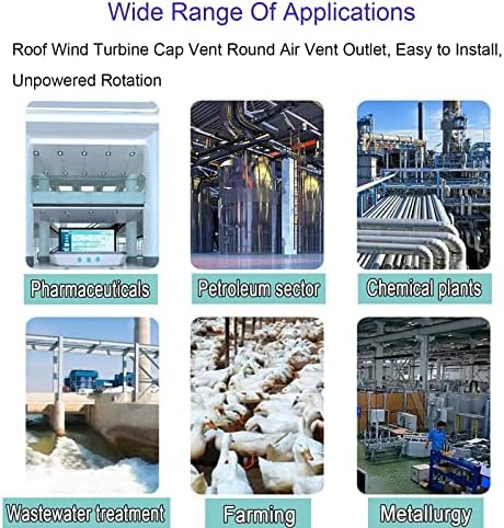Roof turbines ventilation, roof wind turbines raindrop ventilating stainless steel roof ventilation ventilated ventilation ventilation ventilated fans High wind speed, strong pressure pressure, not easy to damage, compact blade structure, long life of stainless steel blades Material: 304 stainless steel Advantages: discharge indoor hot air and dirty air, purify the indoor environment Principles: Utilize natural wind and indoor temperature difference, air -to -flow drives turbines rotation. Eliminates the old air in the room with centrifugal force and negative pressure. Application: For the ventilation of exterior walls such as bathrooms, kitchens, warehouses, residences, apartments, etc. packing list: 1* No dynamic ventilated port Size - The package includes: 110mm (4.3 inches) ventilation cap×1, clamp×1 160mm (6.3 inches) ventilation cap×1, clamp×1 200mm (7.9 inches) ventilation cap×1, clamp×1 250mm (9.8 inches) ventilation cap×1, clamp×1 300mm (11.8 inches) ventilation cap×1, fixed foot×3 350mm (13.8 inches) ventilation cap×1, fixed foot×4 400mm (15.7 inches) ventilation cap×1, fixed foot×4 If you have any questions about the product, please feel free to contact us, our professional customer service team will answer your doubts