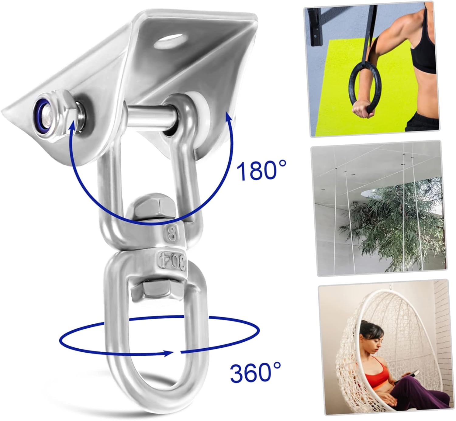 Package List 1 x Set of Hangers Features -Material: 304 Stainless Steel hanger stainless steel -Color:Silver hanger rotate -Size: 10.00X7.00X4.00cm/3.93X2.75X1.57in hardware kit -Great for hanging heavy equipment, such as hammocks, recreational swings, and more hanging kit stainless steel. -The heavy-duty ceiling hanger has a high load capacity, is safe and reliable, and can be used with confidence hanging kit heavy duty. -You can easily attach the hook hanging set to any solid ceiling, wall and wood beam ceiling rotate hanger. rotate hanger -Made of 304 stainless steel, no rust, high hardness, hanger with hooks. -The surface of the hanger set is smooth and flat, and it can rotate 360 degrees flexibly without tangling or twisting hanger kit.Goods Informationceiling rotate hanger Are you looking for professional and practical Hangers? If yes, your search can stop here! Because our products can meet your needs.rotate hanger The heavy-duty ceiling hanger has a high load capacity, is safe and reliable, smooth and flat, and it can rotate 360 degrees flexibly without tangling or twisting