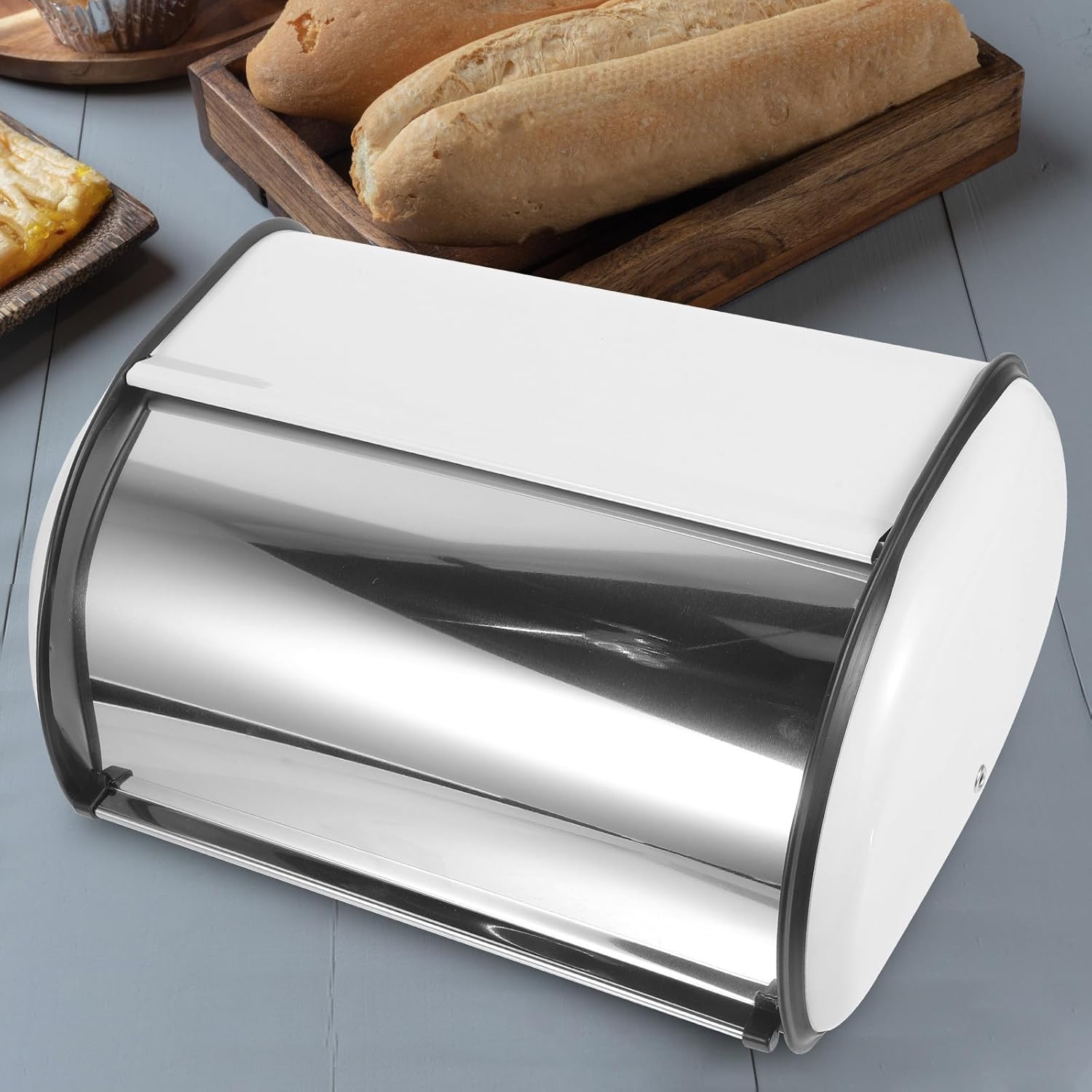 Package List 1 x Bread Box Features - Size: 34.50X23.00X14.50cm/13.56X9.04X5.70in -Product Info:Bread storage box -Material:Stainless Steel - ColorSilver -The bread box that made of stainless steel material, which is not easy to deform and break. -Bread Box can be used in many occasions, such as kitchen, homes, bakeries, coffee shops and other places bread loaf container. -The essential storage box to store bread, snacks, fruits, kitchen utensils and other daily necessities stainless steel bread pan. -With the cover, which can prevent dirty items from entering the bread box bread organizer. -There is a wide base at the bottom of the bread box, which can make it place on the table firmly and reliably bread storage container.Goods Descriptionstainless steel toast holder Can't you find a suitable place to store delicious bread? Do you always worry about the cluttered tables in the kitchen? Are you tired of cleaning the kitchen? If so, don't wait any longer, come and take at our creative and multi-function Bread Box that can help you store your different kinds of bread