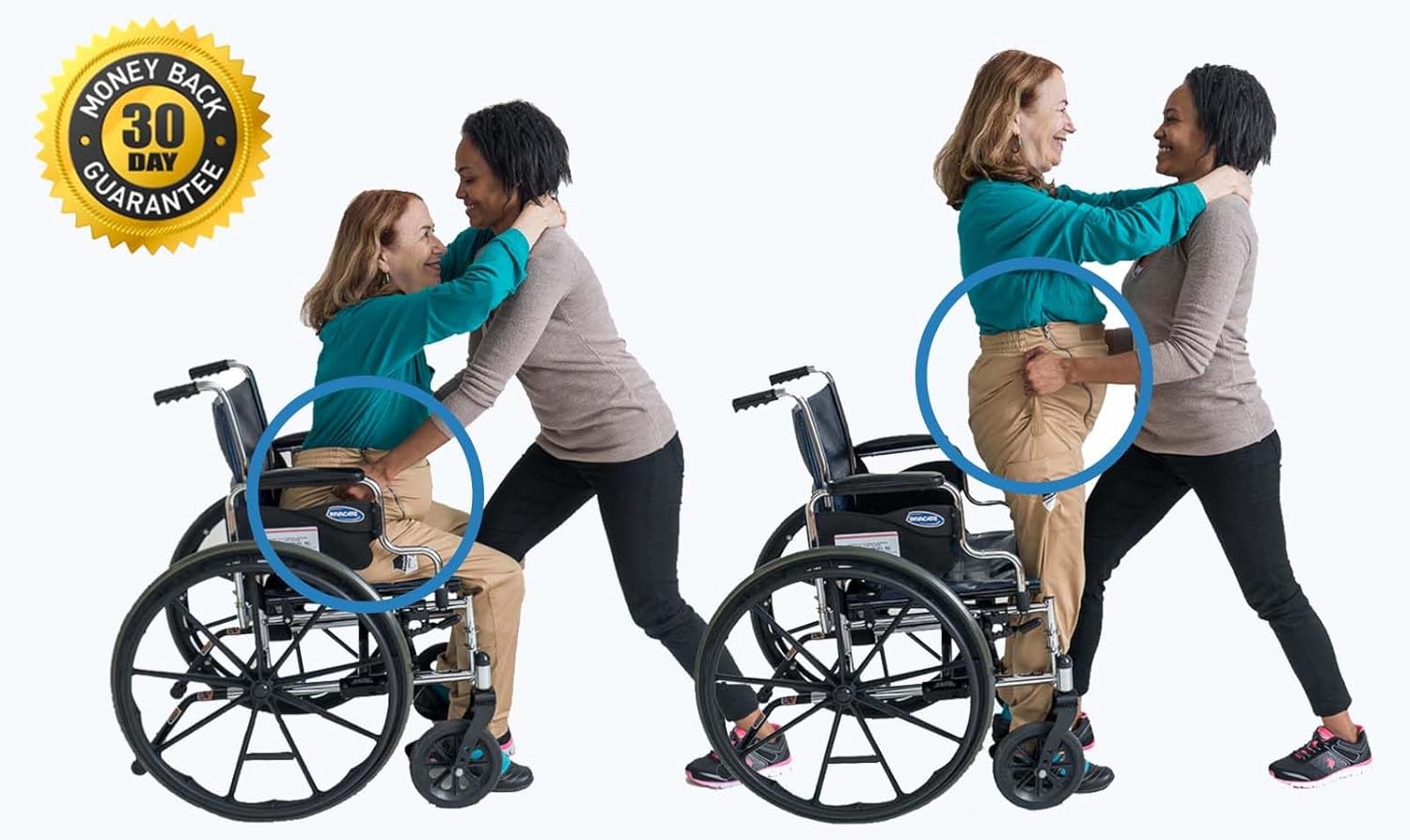 Transfer Pants(TM) fleece sweatpants are comfortable and warm with a soft and plush feel for everyday wear. They are designed with patented & reinforced side handles to help caretakers transfer patients from/to wheelchair. Great addition or alternative to Gait Belts.