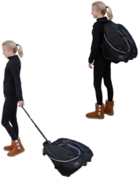 STD Skates & Wheels - Backpack and Trolley Isosceles Roller Carrier Transformable - Skates Pull & Carry BackPack or Rolling Bag Backpack for ice skates and roller skating with trolley wheels. Backpack bag with wheels. Hand handle. Sturdy and comfortable backpack straps. Backpack straps close for easy pulling. Covered wheels to carry as a backpack. Two skate pockets. Isosceles space for storing things between the skates pockets Telescopic handle tucked away for backpack use. Air Flow Vents Water Bottle Holder Zip pockets with drawstring. Dimensions: 43 x 33 x 33 cm. 17"x13"x13" inch Trolley handle 100 cm extended 40 inches. Interior space 31x31cm, 12.5"x12.5" inches.