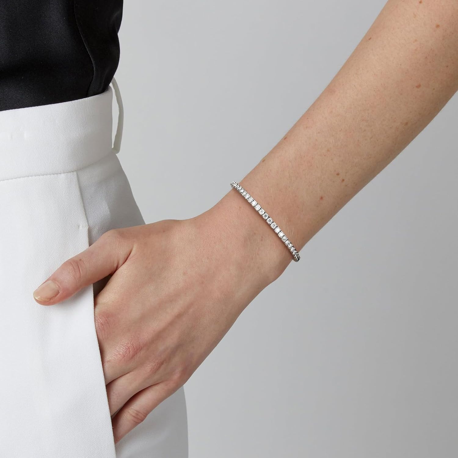 This 7-inch white gold-plated 925 silver bracelet, featuring 3mm Moissanite gemstones, exudes luxury and elegance. The VVS1 solitaire design symbolizes timeless beauty, perfectly blending fashion with classic charm. Whether worn alone or stacked with other accessories, it enhances your overall style.