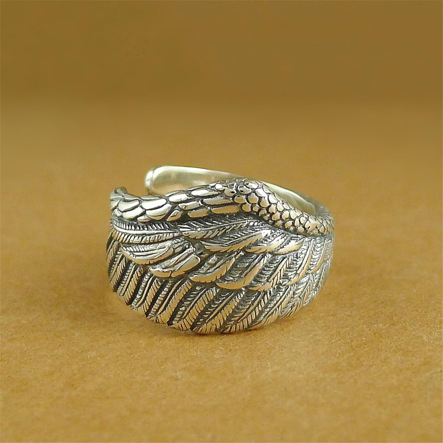 Sterling Sliver Oxidized Eagle Feather Wing Open End Wrap Ring Full UK Hallmark, Sterling Silver, No Gemstone