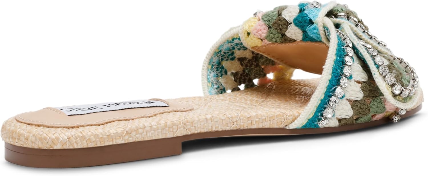 Step into the spotlight with MISHA. These slidesandalsfeature a playful knot detail and shimmering rhinestones that will catch everyone's eye. Perfect for adding some glam to your everyday look.