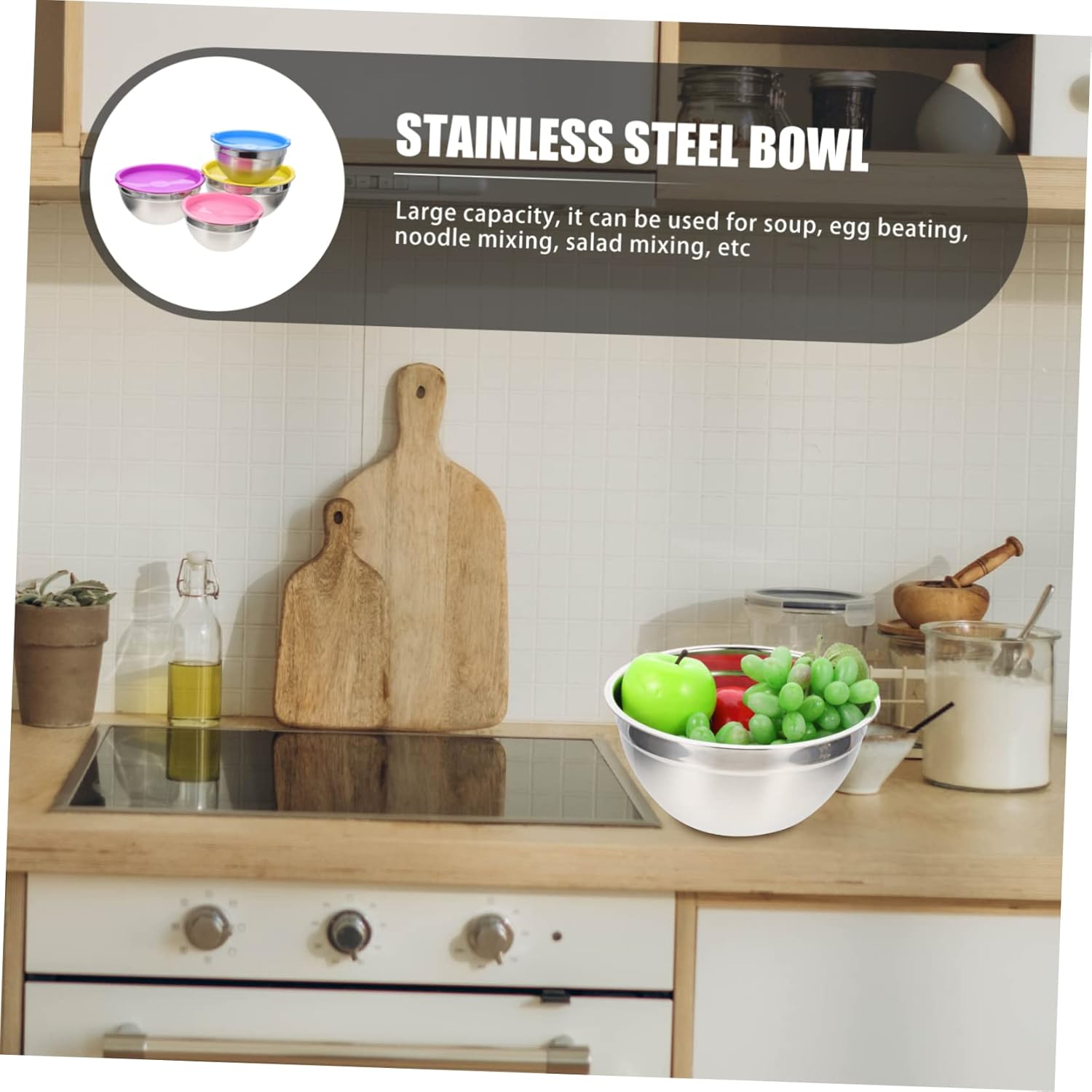 Package Include 4 x Mixing Bowls Characteristics - Size: About 24.00X24.00X11.00cm/9.43X9.43X4.32inch Kitchen Tableware - Material: Stainless Steel Stainless Steel Salad Bowl - Color: As Shown Stainless Steel Mixing Bowl - The size for you, so that it always fits all the snacks and foods you like Stainless Steel Storage Bowl. - This item is a mixing bowl, which is made of good material for and use Mixing Bowls with Lids Set. - Fine workmanship and wonderful detail its practicality and durability in your home Salad Serving Bowl. - The multipurpose bowl is suitable for the use , bar, hotel and restaurant Fruit Storage Container. - The bowl is great for any types of foods such as fruit, salad, snack, dessert and much more Home Serving Bowl.Goods DescriptionHome Essentials Its simple yet design makes it suitable for all kinds of food.Mixing Bowls You can use it as a noodle bowl, porridge bowl, flour bowl, soup bowl.Kitchen Soup Bowl It's a wonderful bowl for your home.Stainless Steel Salad Bowl It is multi-functional and to use.Salad Serving Bowl The item is a food serving bowl made of stainless steel material, to use