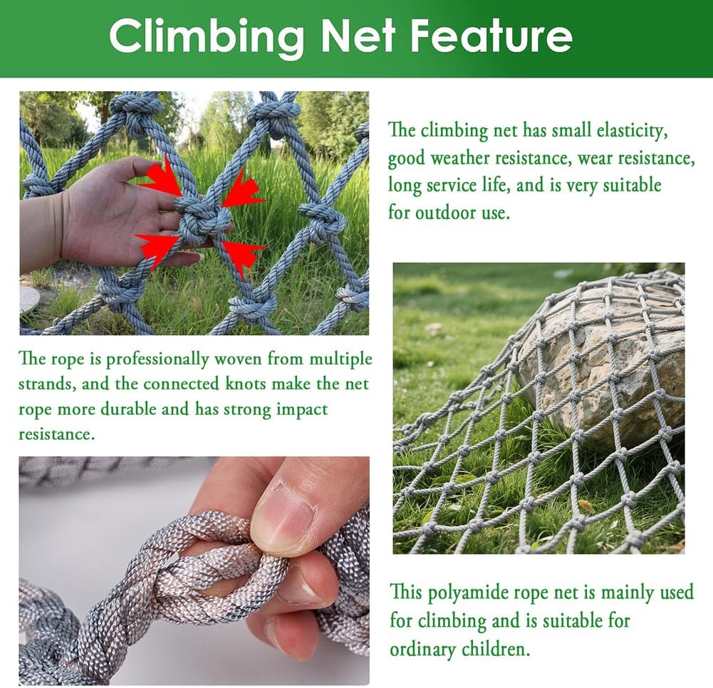 This versatile and durable climbing cargo net is designed to enhance safety and enjoyment for both kids and adults. Crafted from high-quality polyamide fiber, this climbing net features a soft, uniform mesh that ensures a comfortable grip while providing robust support for climbing activities. Its hand-woven knots guarantee even stress distribution and impressive tensile strength, making it a reliable choice for various applications.Whether you're setting up a fun climbing frame for your children or creating an adventurous indoor play area, this climbing net is the perfect solution. The 12 mm diameter of the protective net and 15 cm grid spacing provide ample support while maintaining safety standards. Ideal for outdoor playgrounds, treehouses, or even as decorative elements in your backyard, this climbing net seamlessly blends functionality with aesthetic appeal.Please note that the actual color of the product may vary slightly due to display settings, and minor size discrepancies may occur due to manual measurements. Elevate your climbing experience with this dependable climbing cargo net, where safety meets fun!