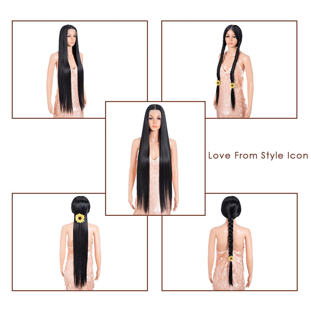 Style Icon 38 Inches Super Long Wig Unmatched Realism with a 13x4 Lace Allowing for a wider range of parting options—middle, side, or even zig-zag—giving you complete creative freedom. The transparent HD lace and meticulously pre-plucked hairline ensure an undetectable transition from your skin to the wig, creating a breathtakingly authentic scalp illusion. Designed for Your Comfort and Convenience Adjustable elastic band at the back, allowing you to customize the tightness for a snug, secure feel all day long. 3 Built-in-clips provide additional stability, so you can move with confidence, whether you’re at work, dancing, or running errands. Versatile Styling for Endless Possibilities Made from high-quality heat-friendly synthetic fiber, this wig holds its sleek, straight style beautifully. When you want to change your look, you can safely use heating tools like flat irons or curling wands within the recommended temperature range (266°F - 320°F). Care & Maintenance Instructions: To ensure the longevity of your beautiful wig, please follow these simple care tips: 1. Washing: Gently detangle with a wide-tooth comb before washing. Soak the wig in cold water with a mild shampoo for 5-10 minutes. Rinse thoroughly with cold water. 2. Conditioning: Apply a light conditioner, avoiding the lace area. Rinse with cold water. 3. Drying: Gently pat dry with a towel. Allow it to air dry naturally on a wig stand. Do not wring or twist the hair. 4. Styling: Use heat styling tools only within the 266°F - 320°F range. Excessive heat will damage the fibers. 5. Storage: Store on a mannequin head or in its original net to maintain shape and prevent tangling. Package Includes: * 1 x Heat Friendly Straight Lace Front Wig (38 Inches, Black) * 1 x Detachable Adjustable Elastic Band * 1 x Wig Net