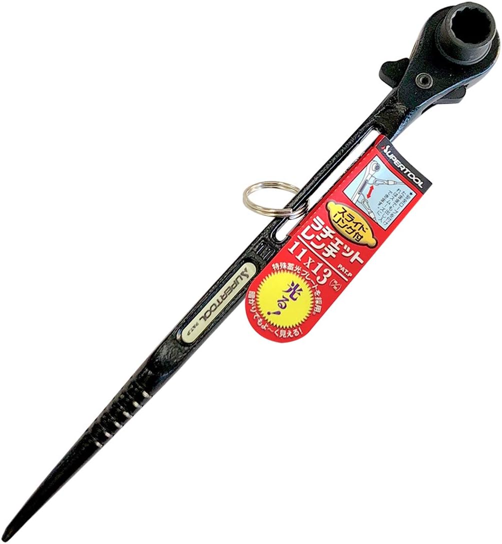 This is a ratchet wrench series made in Japan with a rust-resistant cationic electrodeposition coating on the main body. With a wide range of sizes and a sliding space hole and ring, this product is extremely practical. Comes with a phosphorescent plate that is effective to prevent loss. The safety rope can move freely, and it has a sliding space hole that allows for stress-free storage even for tools. Comes with a ring that attaches directly to the shackle of the safety rope. Knurled grooves on the top of the shino to prevent slipping.