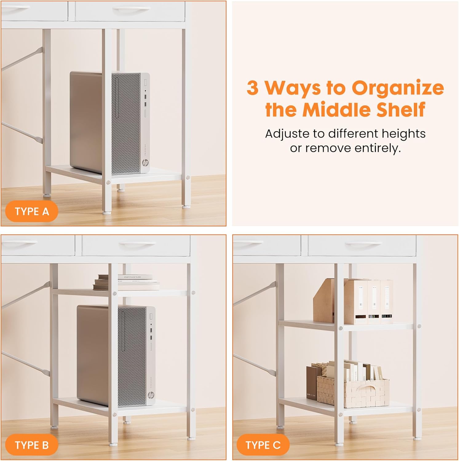 | Included Components | Adjustable Feet, Adjustable Shelf, Cable Hole, Drawers |
