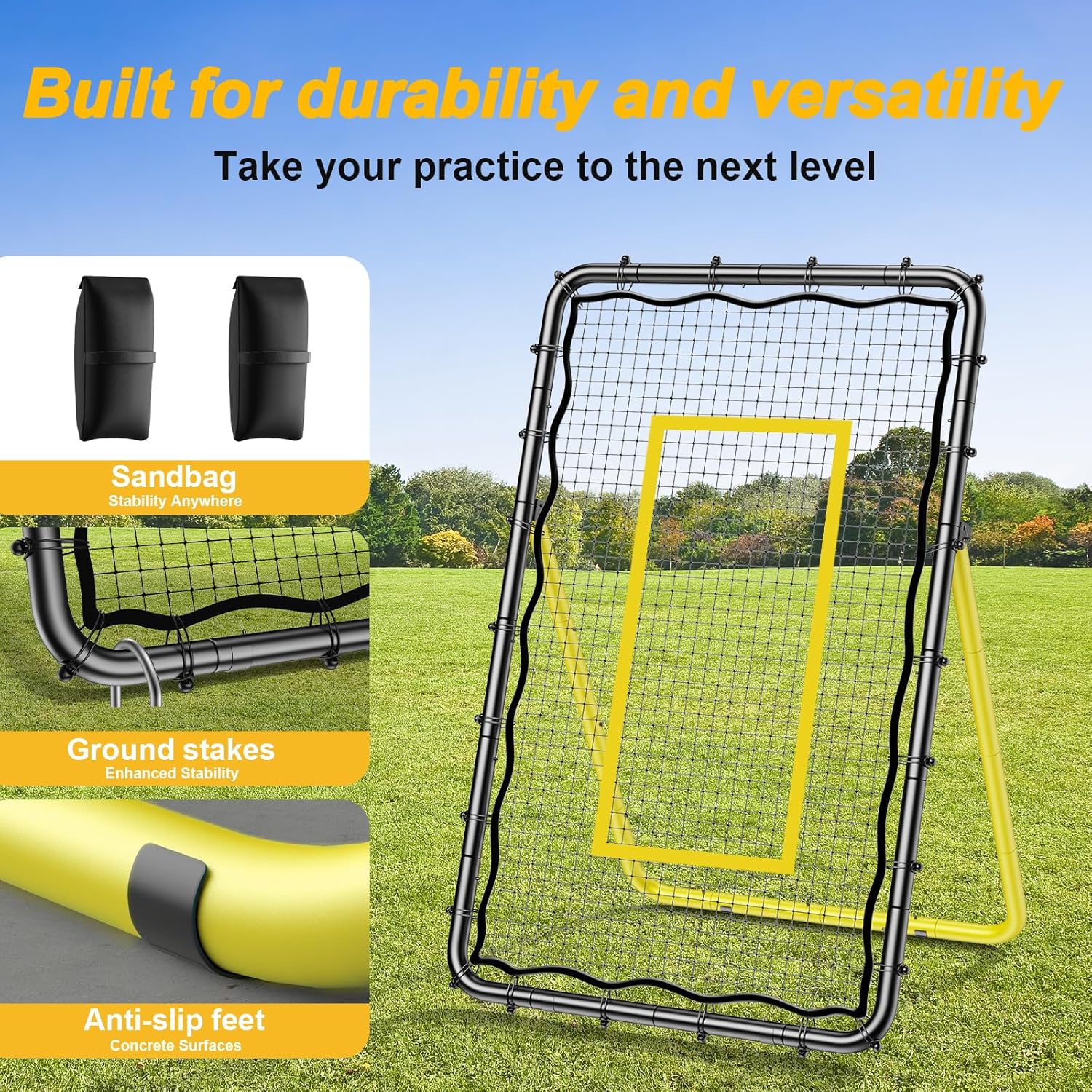 | Included Components | 2xHigh-Tension Rebound Net (7x4ft & 4x4.75ft) with Bungee Cords Pack, 2xSand bag 4xGround Stakes(Extra Stability Performance On Grass And Sand), 2xTarget Zone For Accuracy Training, 5 Angles Adjustable All Metal Frame, Protable Premium Waterproof Carrying Bag |