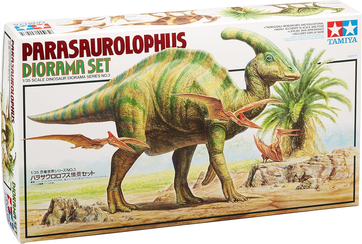 Parasaurolophus diorama set 300060103 Tamiya dinosaur diorama Tamiya dinosaur diorama series. For many years, the extinct species of dinosaurs have been delighted by people from all over the world. Tamiya's dinosaur diorama series refers to the scientific knowledge to reproduce highly lifelike and convincing models. With this series you can create your own "lost world". Prehistoric prehistoric prehistoric animal diorama set "Parasaurolophus". For many years, the extinct species of the dinosaurs have been delighted by people from all over the world. Tamiya's dinosaur diorama series refers to the scientific knowledge to reproduce highly lifelike and convincing models. With this series you can create your own "lost world". Technical details: 1:35 scale · Detailed assembly kit · 1 dinosaur · Diorama base with accessories · Assembly instructions · Unpainted. Warning: not suitable for children under the age of 14.