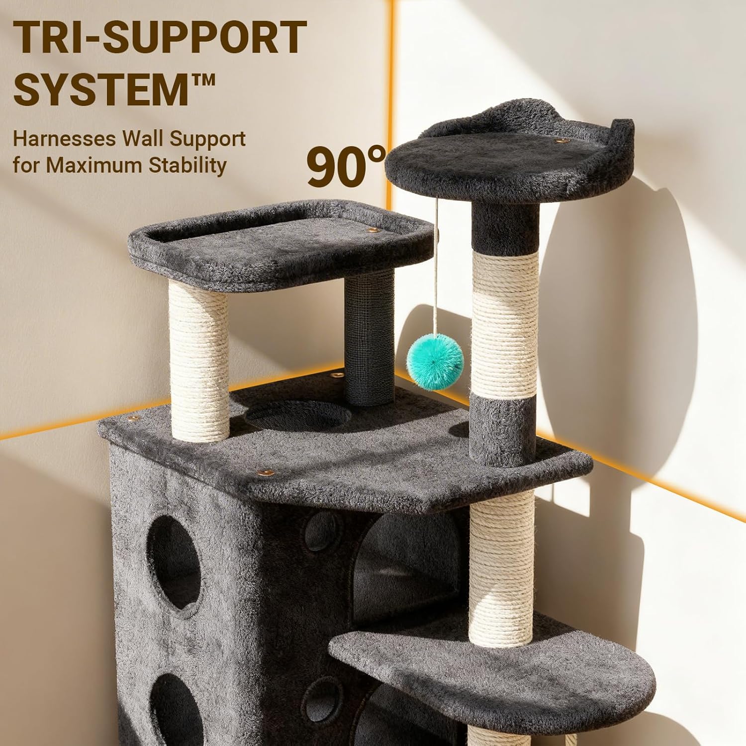 | Included Components | 3 Cozy Hideaway Condos, Dangling sisal rope, Furry Ball, Self-grooming brush, Thick Sisal Scratching Posts |