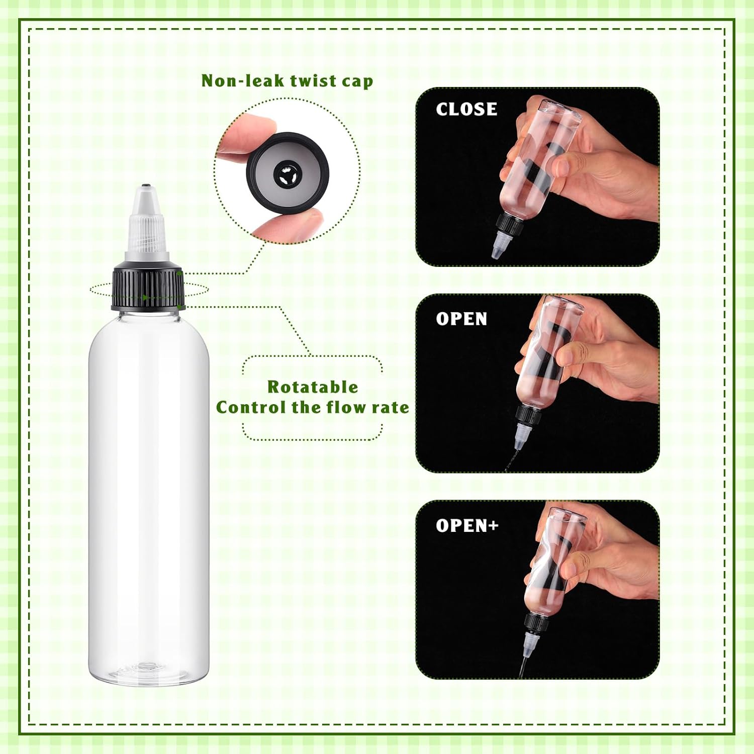 Features: Owing to nice capacity, our round plastic squeeze bottles are lightweight and easy to carry. Besides, they are also easy to store without occupying much space. These squeeze bottles can be practical presents for family, relatives, neighbors, mates and more, making them do experiments conveniently. Specifications: Quantity: 100 pcs Capacity: about 3.4oz/ 100 ml Main color: clear Material: PET plastic Package includes: 100 x Plastic squeeze bottles Warm notes: Please allow a little error on the size due to manual measurement. The color might have a slight difference due to different displays. Please read the size instruction carefully before purchasing