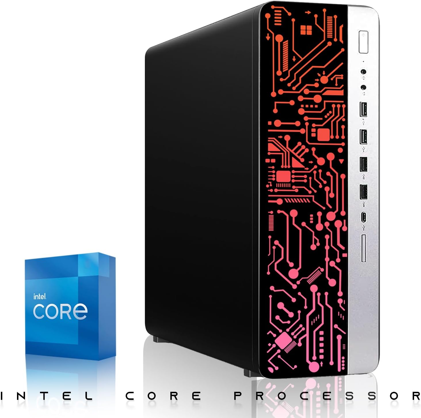 Experience the power of high-performance computing with the full combo of Restored HP G4 Desktop RGB Computer PC, where you get sharp edged new vibrant 24-inch curved MTG monitor for superior gaming experience and booming bass to crystal-clear highs with included RGB speakers and 2 x ARGB Fan. Also, the customizable RGB lighted Keyboard & Mouse will give you another level of gaming experience. This meticulously renewed desktop boasts an Intel i7-8th Gen processor, providing lightning-fast speeds and seamless multitasking capabilities for both work and play. With 16GB of DDR4 RAM, expect smooth performance even with demanding applications and intensive gaming sessions and with spacious 512GB SSD with GT 1030 Graphic card, this PC ensures rapid boot-up times and ample storage space for your games, files, and multimedia content
