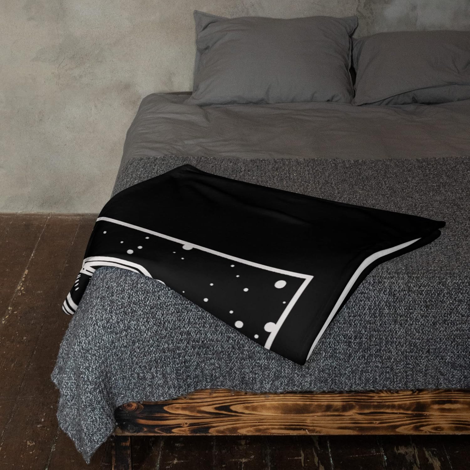 The Hermit Tarot Card Throw BlanketIn our rendition of this tarot card, you will find The Hermit standing alone in a boat as he glides across the River Styx. Seen here as a psychopomp to the afterlife, The Hermit has achieved spiritual mastery. He is a guide to those seeking a heightened level of knowledge and understanding. The lantern in his right hand signifies The Hermit’s vast wisdom. As he moves forward in his path along the river, the lantern (his conscious mind) helps to light his way, though he knows he must make calculated decisions when planning a course into the future farther than his lantern’s light can reach. In his left hand, he holds a staff, which symbolizes the strength of his subconscious mind. The staff is a symbol of strength and stability, which he uses to balance him through the rough waters throughout his journey through life. In the water, we see the skeletal hands of those lost to the River Styx who look to The Hermit for guidance and assistance. But The Hermit knows that one must help oneself on this journey, so he keeps his gaze ahead.Throw Blanket Features - Fine Line Detail & Intense Vivid Colors - Soft Silk Touch Fabric - Printing on One Side - White Reverse Side - 100% Fleece Washing and Drying Instructions - Cold Gentle Machine Wash - Line or Tumble Dry on Low - Don’t Bleach or Iron