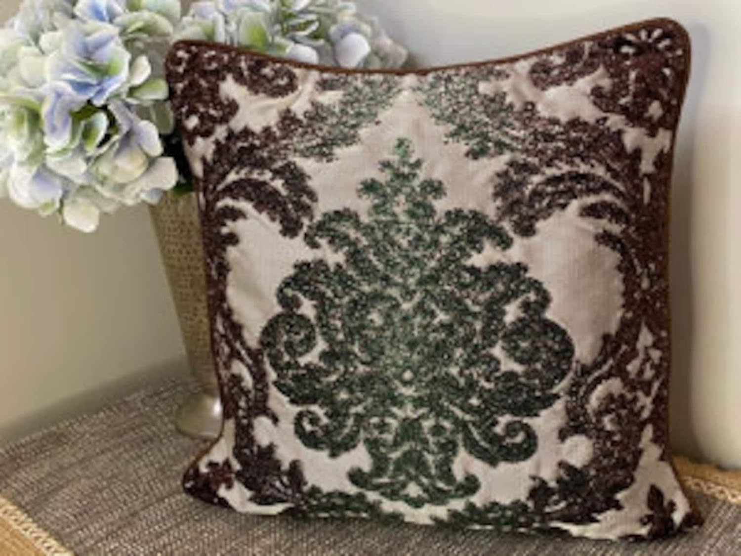 Florastic Lattice is an exclusive 100% handmade decorative euro sham cover designed and created with intrinsic detailing. A perfect item to decorate your living room, bedroom, office, couch, chair, sofa or bed.Decorative Euro Sham Cover Details:Condition: 100% Brand NewDimension: 26 x 26 inch (65 x 65 cm)Fabric: Jacquard SilkMaterial: SilkColor: BrownColor Map: BrownPattern: GeometricStyle: ContemporaryBack of the Cover: Plain fabric with concealed flap covered zipper on the back for easy insertion and removal of insertsNote: This listing for decorative throw pillow cover does not include Pillow or Inserts. We do not sell pillow inserts on our store. Due to the difference in computer monitors, actual colors may slightly vary.The HomeCentric is the place where luxury is coated in comfort. Coveted by many, we offer a wide range of decorative pillow covers, euro shams, bed runners, table runners, duvet covers and even fabrics for your curtains and other home decor products. Handcrafted by Indian artisans, our products exhibit fine finishing and style to meet all your expectations.Our services reach out from customization to endless effort from your first click to the day we deliver and even after that. Feel The HomeCentric as your home for decor.