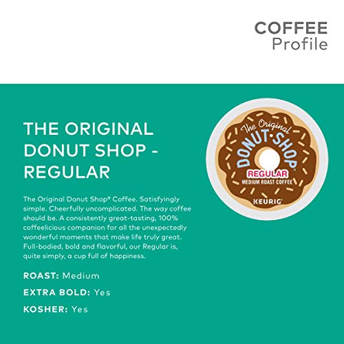 The Original Donut Shop Coffee. Satisfyingly simple. Cheerfully uncomplicated. The way coffee should be. A consistently great-tasting, 100% coffeelicious companion for all the unexpectedly wonderful moments that make life truly great. Full-bodied, bold and flavorful, our Regular is, quite simply, a cup full of happiness. This is an extra bold variety, so each pod contains more delicious coffee than average K-Cup pods. These single-serve K-Cup pods are compatible with all Keurig K-Cup Pod Single-Serve Coffee Makers and brew up to 12 oz. of The Original Donut Shop coffee each. Each K-Cup pod is filled with the freshest decaffeinated ground coffee and brews a perfect, great tasting cup of coffee, every time. Certified Orthodox Union Kosher and contains no artificial ingredients. Bundle contains six 24-count pod boxes.