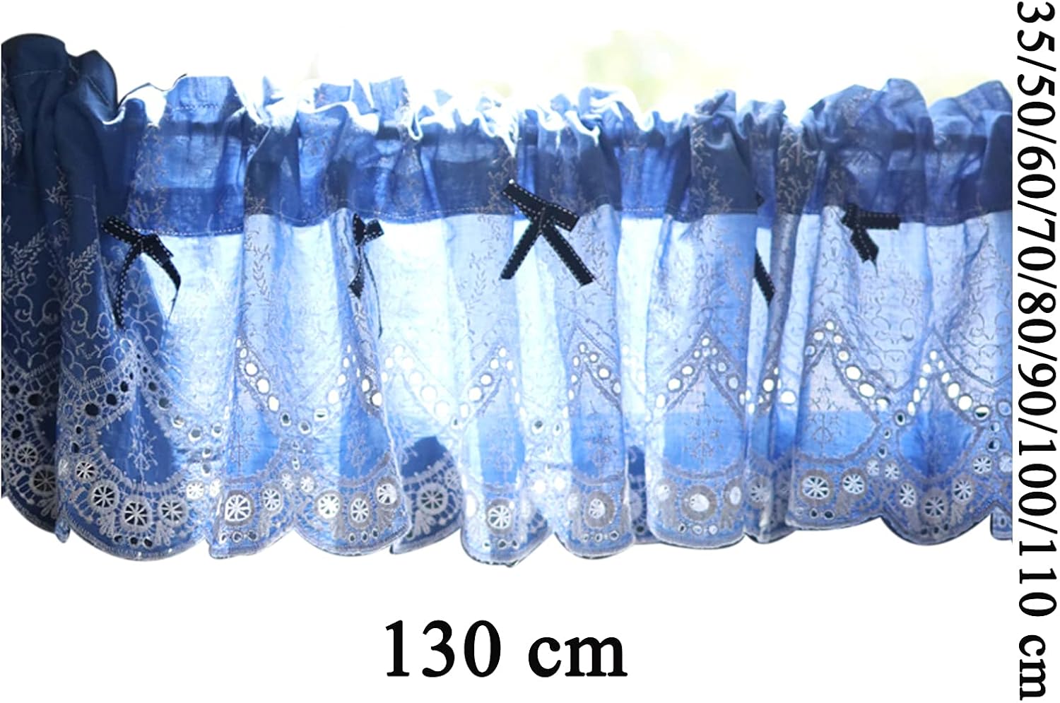 ● Short country-style curtains Semi-transparent kitchen curtains Partial shade Café curtains are soft and skin-friendly, with good air permeability. ● They are the perfect decoration for any fashionable space that will make your home more elegant and provide you with a comfortable and healthy environment. ● It is the perfect decoration for kitchen, living room, bathroom, bedroom, girl's room, small window. ● Technical support - Name: kitchen curtain - Material: cotton - Colour blue - Dimensions: Width X Height (W x H) 130X35cm, 130X50cm, 130X60cm, 130X70cm, 130X80cm, 130X90cm, 130X100cm, 130X110cm (The labeled size is tiled, not folded.) - Function: decoration, shading - Degree of shading: 1% -40% - Package includes: 1 piece of cafe curtain (without rod) ● Precautions in Selecting the Size In order to create a better look, please select the width 1.2-1.5 times the window width, so you get a slight drapery and the pattern is still easy to see. For the entire window, 2 panels will be more beautiful. ● Notes 1. Due to the light and screen difference, the product may be slightly different from the picture. Due to manual measurement, please allow 1-3cm difference. 2. In order to achieve the desired effect, please iron the curtains before hanging. 3. If you are not satisfied or have any questions, please feel free to contact us. Our customer service representative will get back to you within 24 hours. 4. Thank you for coming and wish you a happy life!