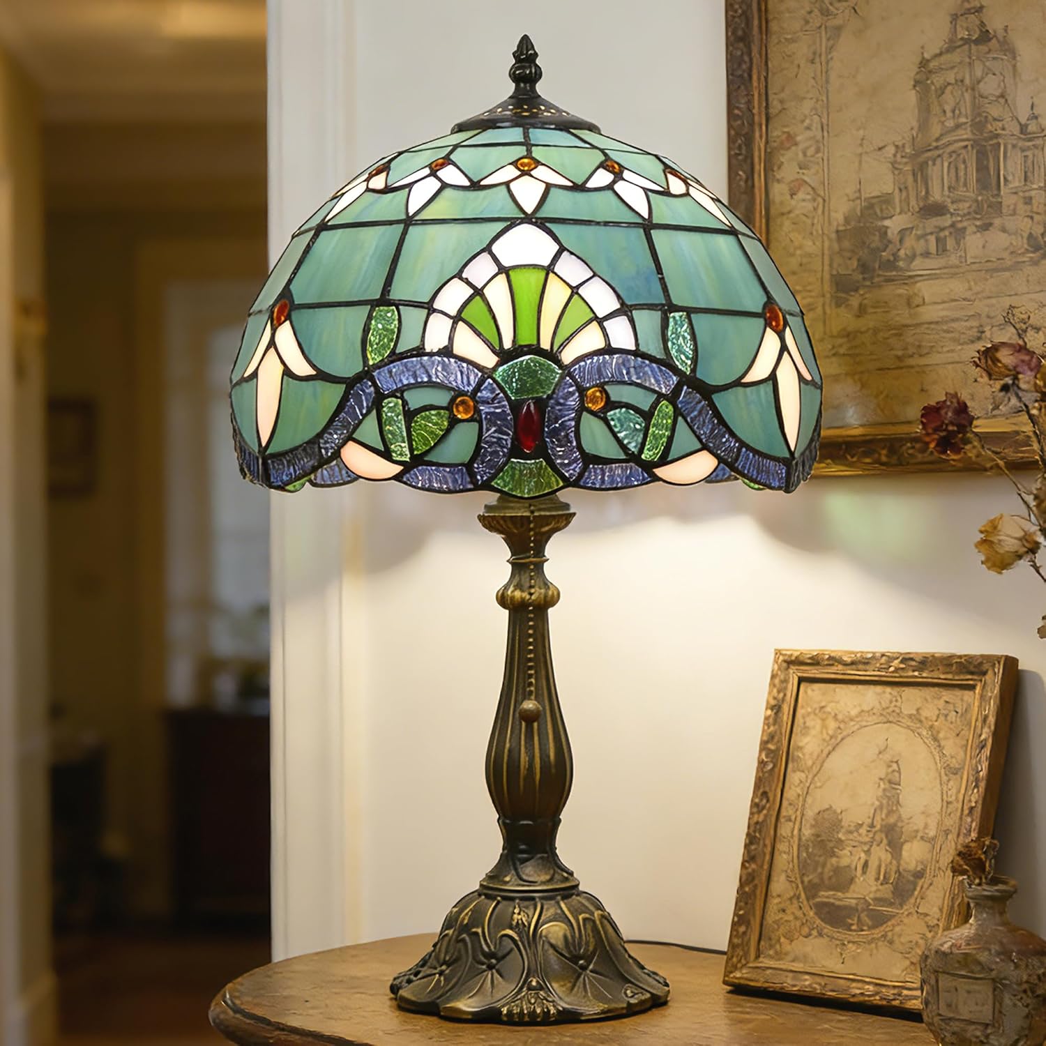| Material Type | Stained Glass Lampshade,Resin Base |