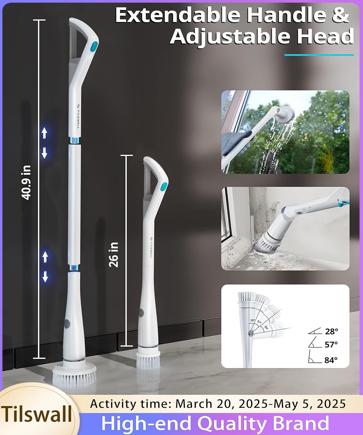 | Included Components | 1 x 9V/2A Fast Charger(Included Charging Cable), 1 x Electric Power Spin Scrubber, 1 x Hock, 4 x Brush Heads |