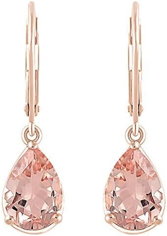 Timeless Treasuress 1.90 Ctw Pear Cut Morganite Leverback Drop and Dangle Earring's 14k Rose Gold Finish 925 Sterling Silver For Women's