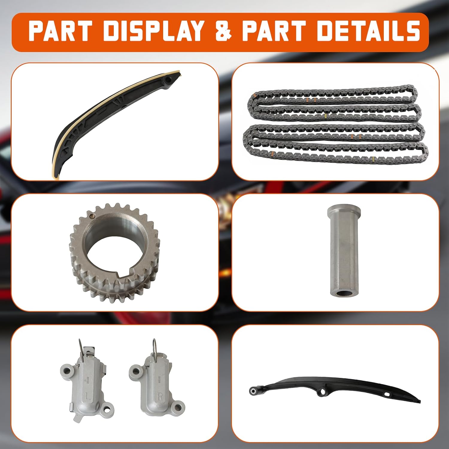 Specification; Part Number: HL3Z-6268-A,HL3Z-6K255-B,HL3Z-6B274-B, HL3Z-6306-A,ML3Z-6L266-A, ML3Z-6L266-B HL3Z6268A. Installation Details: Direct Replacement, Easy to install Product Condition: New & High-Quality Fitment for Auto Models: 🚙for 2017-2021 F150 3.5L V6 DOHC Turbo 🚙for 2017-2021 Expedition 3.5L V6 DOHC Turbo 🚙for 2017-2021 Navigator 3.5L V6 DOHC Turbo Package Include; 1x Timing Chain Kit Product Features; Made of high-quality metal materials; Stable performance, high reliability; High-temperature resistant, long service life; Easy to install, fast response, close to the previous effect; NOTE : Please make sure that the part number written in our link matches the part number of the car you want to replace, or that the part shown in the picture is the same as the car part you need. After confirmation, please feel free to purchase. Our Advantages: We have a professional technical team, provide high-quality products and excellent after-sales service. 7 days / 24 hours online customer service. Our enthusiastic and friendly customer service staff will solve your queries.