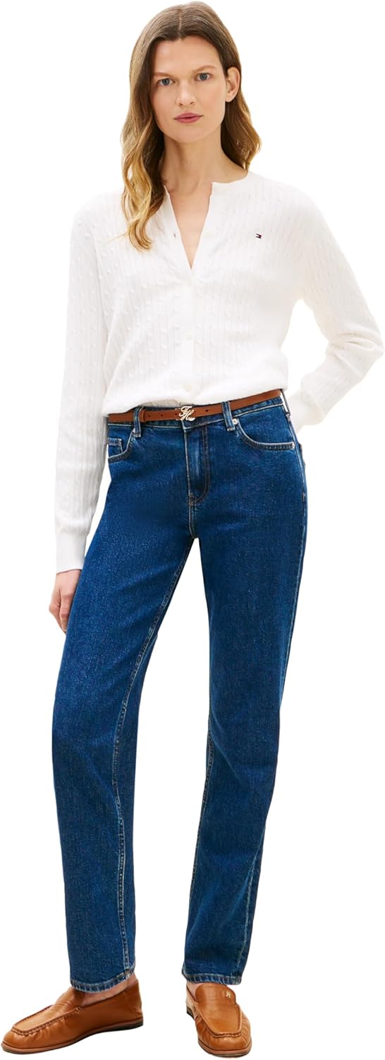 Introducing the Cotton Crewneck Cardigan Sweater with Embroidered Flag Logo from Tommy Hilfiger, featuring the iconic embroidered flag logo and ribbed cuff, hem, and collar crafted from 100% cotton for unparalleled comfort. Complete with embroidered flag logo, this lounge sweater offers both style and functionality. The soft construction ensures warmth without sacrificing breathability, making it perfect for everyday wear. This cardigan sweater strikes the ideal balance between comfort and style, flattering the silhouette while providing room for movement. Pair it effortlessly with your favorite Tommy Hilfiger shirts, tees, shorts, pants, jeans, jackets, or coats for a versatile and timeless look suitable for any occasion, whether casual or formal. Whether you're heading out for a day of leisure or going to the speical occasions, this sweater is the ultimate go-to. Treat yourself or surprise a loved one with this versatile wardrobe staple, ideal for mothers, sisters, girlfriends, wives, daughters, or friends. Experience the unmatched quality and everyday style of Tommy Hilfiger with this must-have women's sweater.