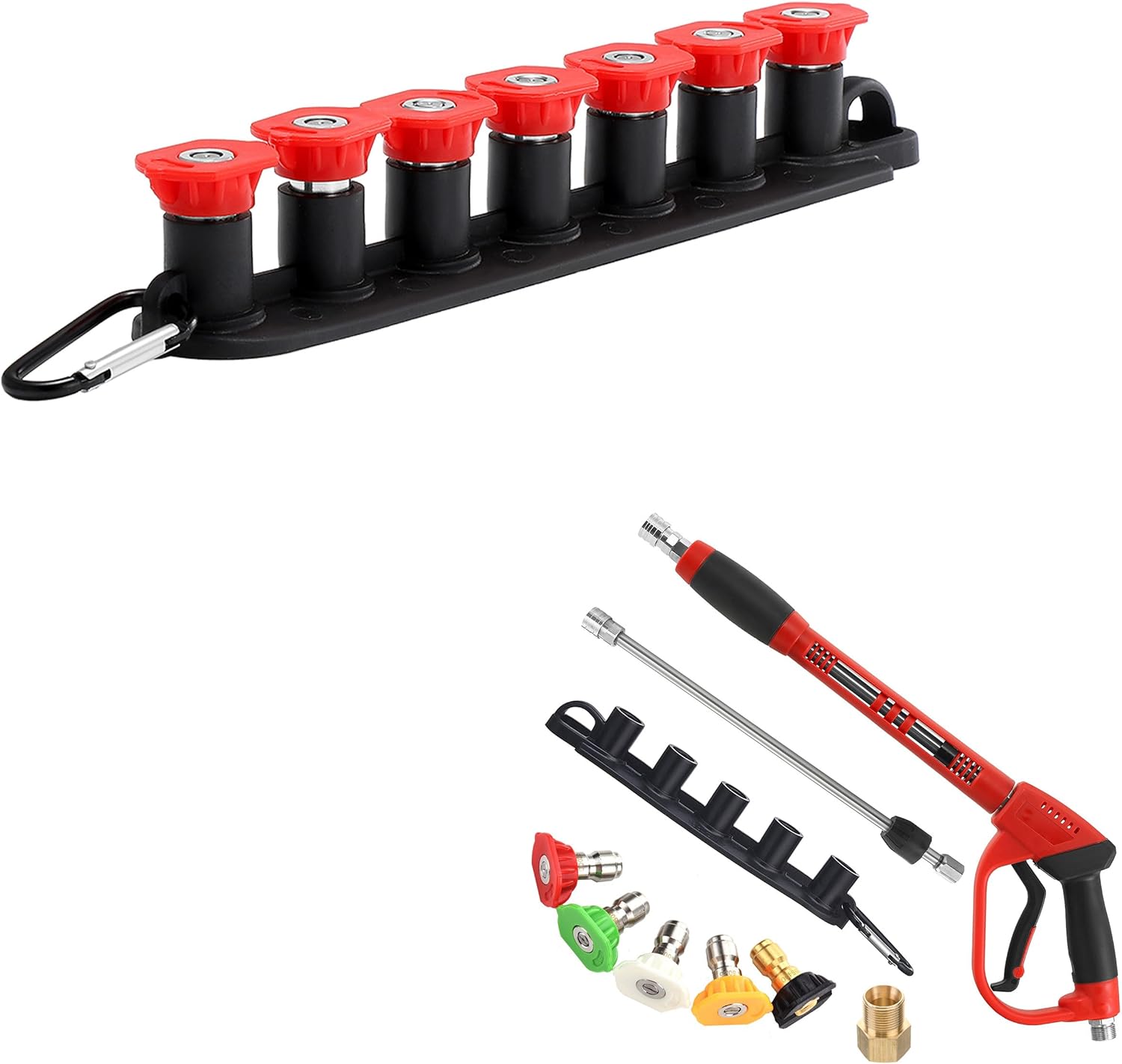 Powerful Performance: These pressure washer nozzles have a 2.5 orifice size and support a maximum working pressure of 4000 PSI, making them compatible with most pressure washersEasy Installation: Equipped with a 1/4โ standard quick connector, these power washer tips easily attach to pressure washer guns or wands. The quick-connect system also ensures a secure, leak-free experienceSuperior Quality: Crafted from premium stainless steel, these pressure washer nozzle tips are rustproof, corrosion-resistant, and highly durable. The nozzle holder is made from sturdy plastic, while the clip is crafted from Aluminum for added longevity